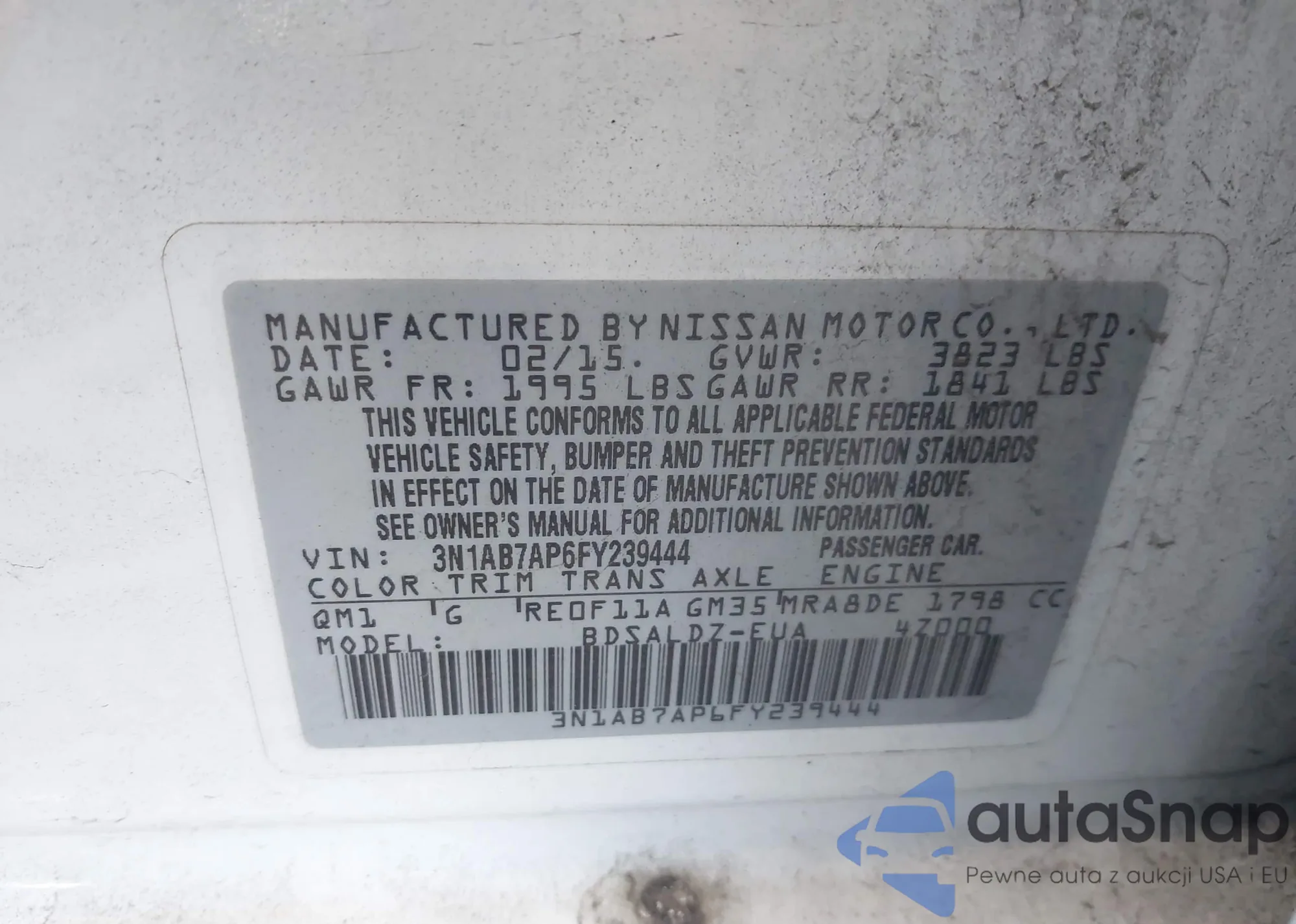 VIN: 3N1AB7AP6FY239444
