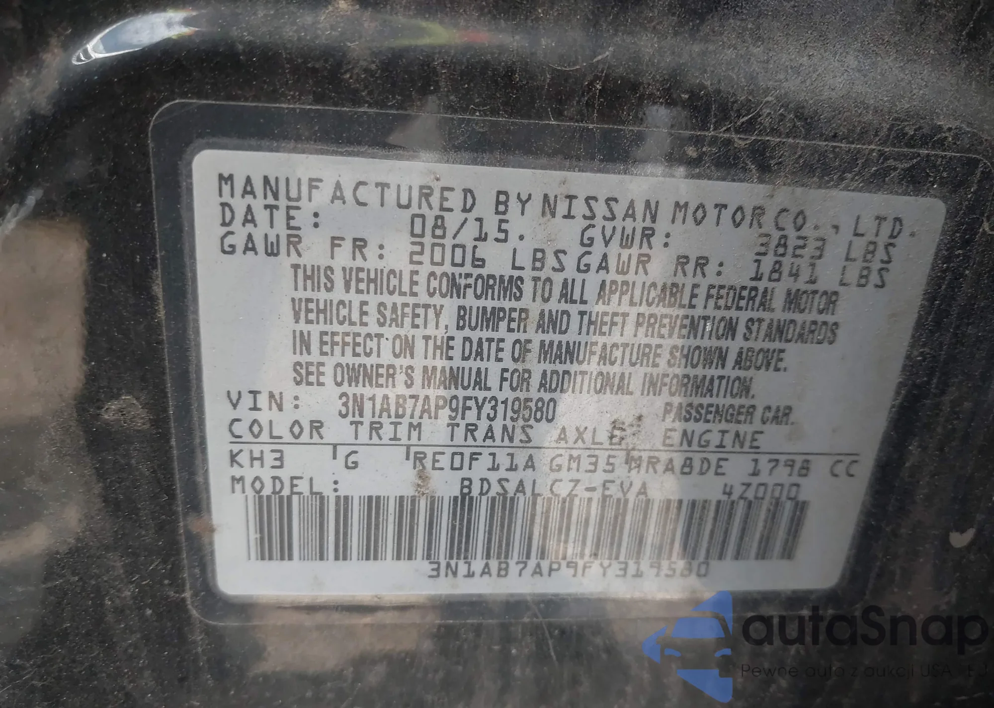 VIN: 3N1AB7AP9FY319580