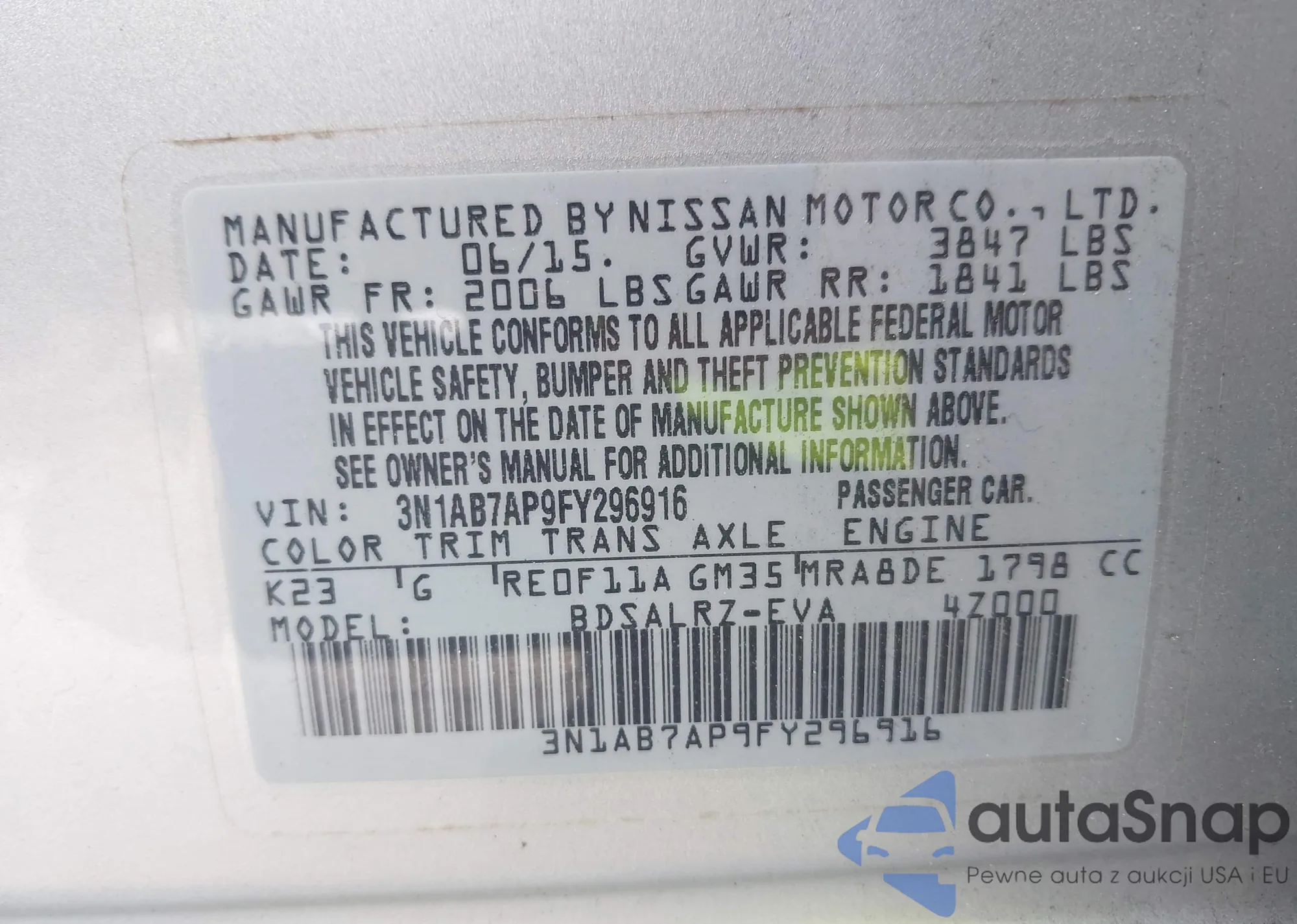 VIN: 3N1AB7AP9FY296916
