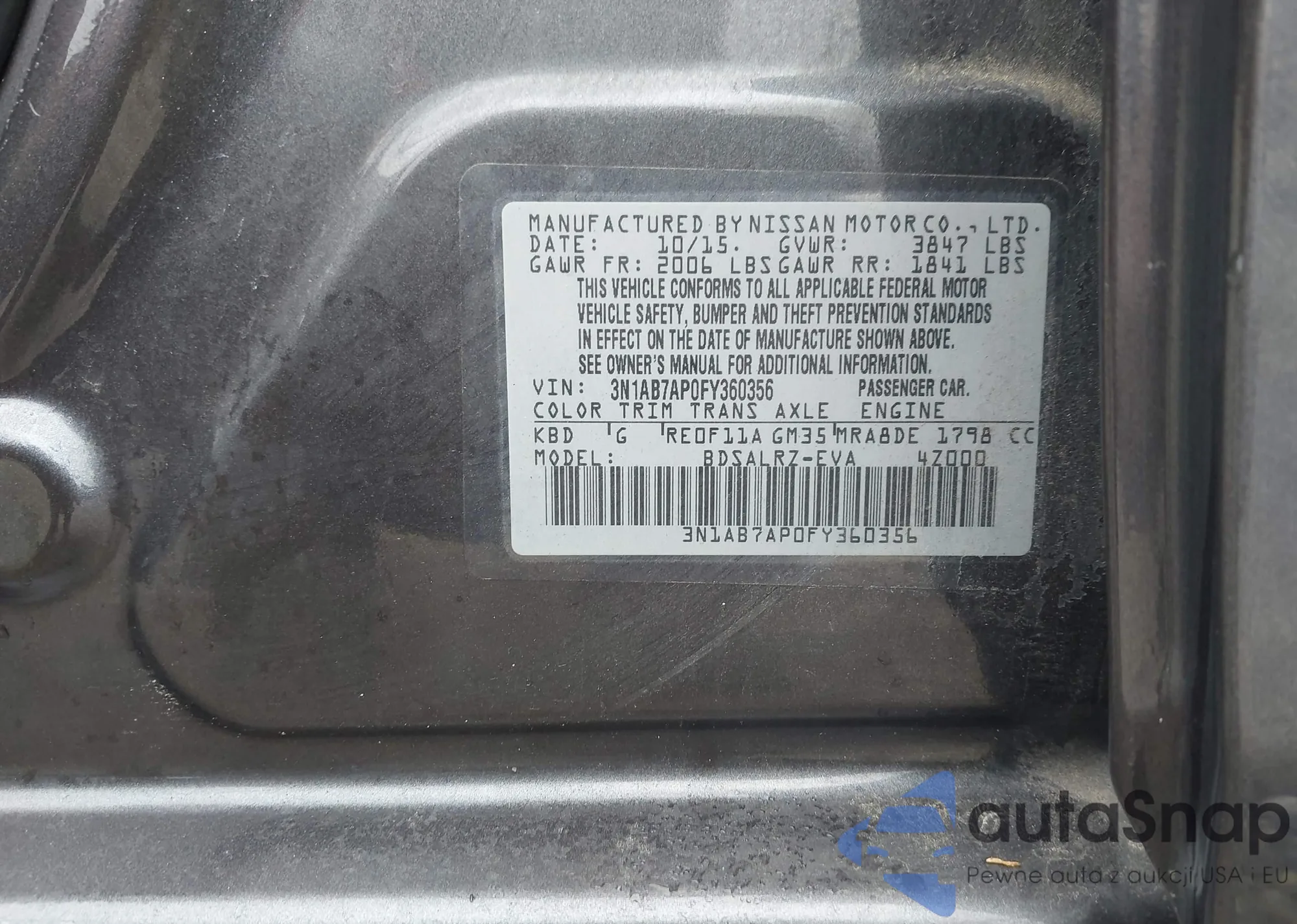 VIN: 3N1AB7AP0FY360356