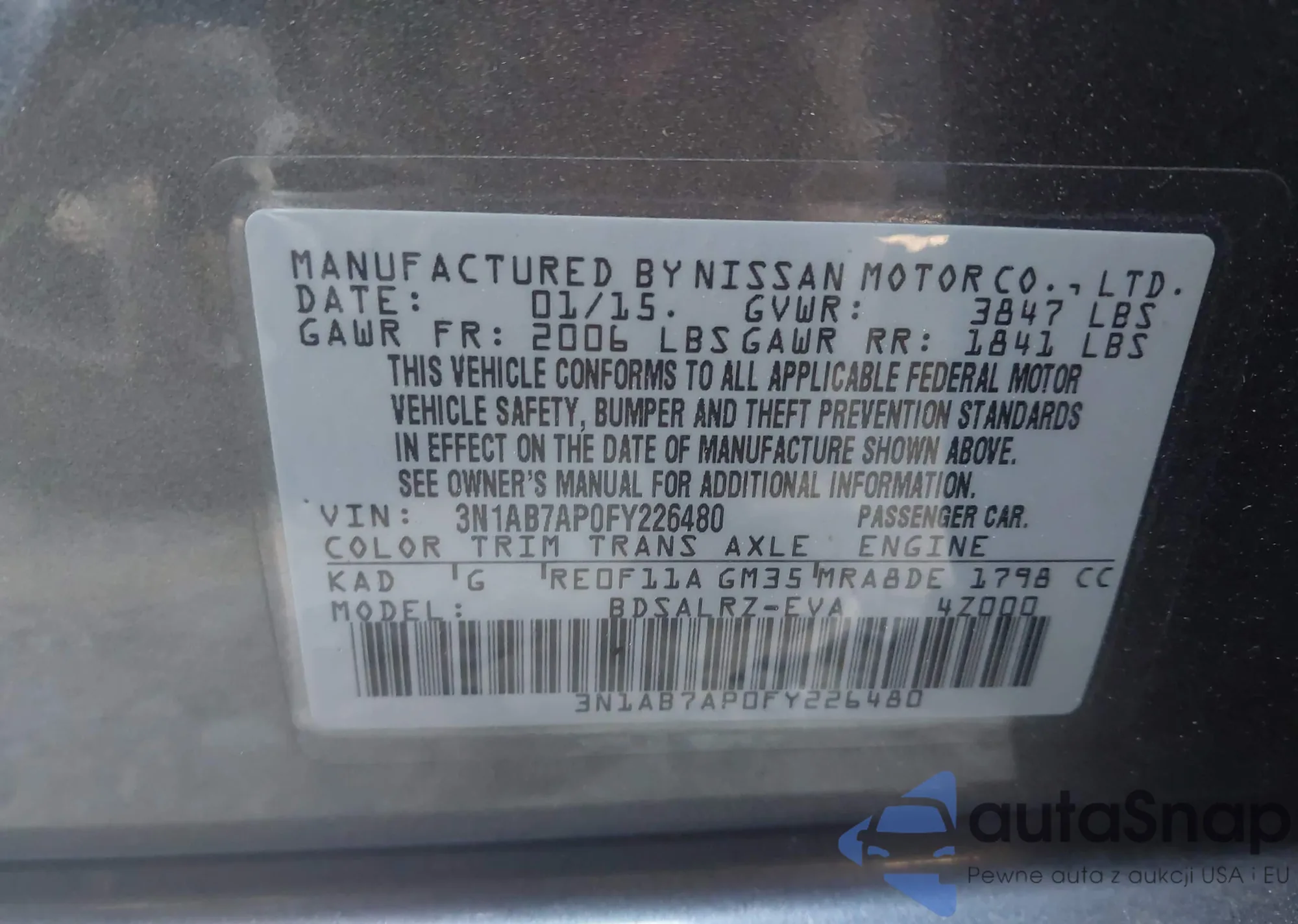VIN: 3N1AB7AP0FY226480
