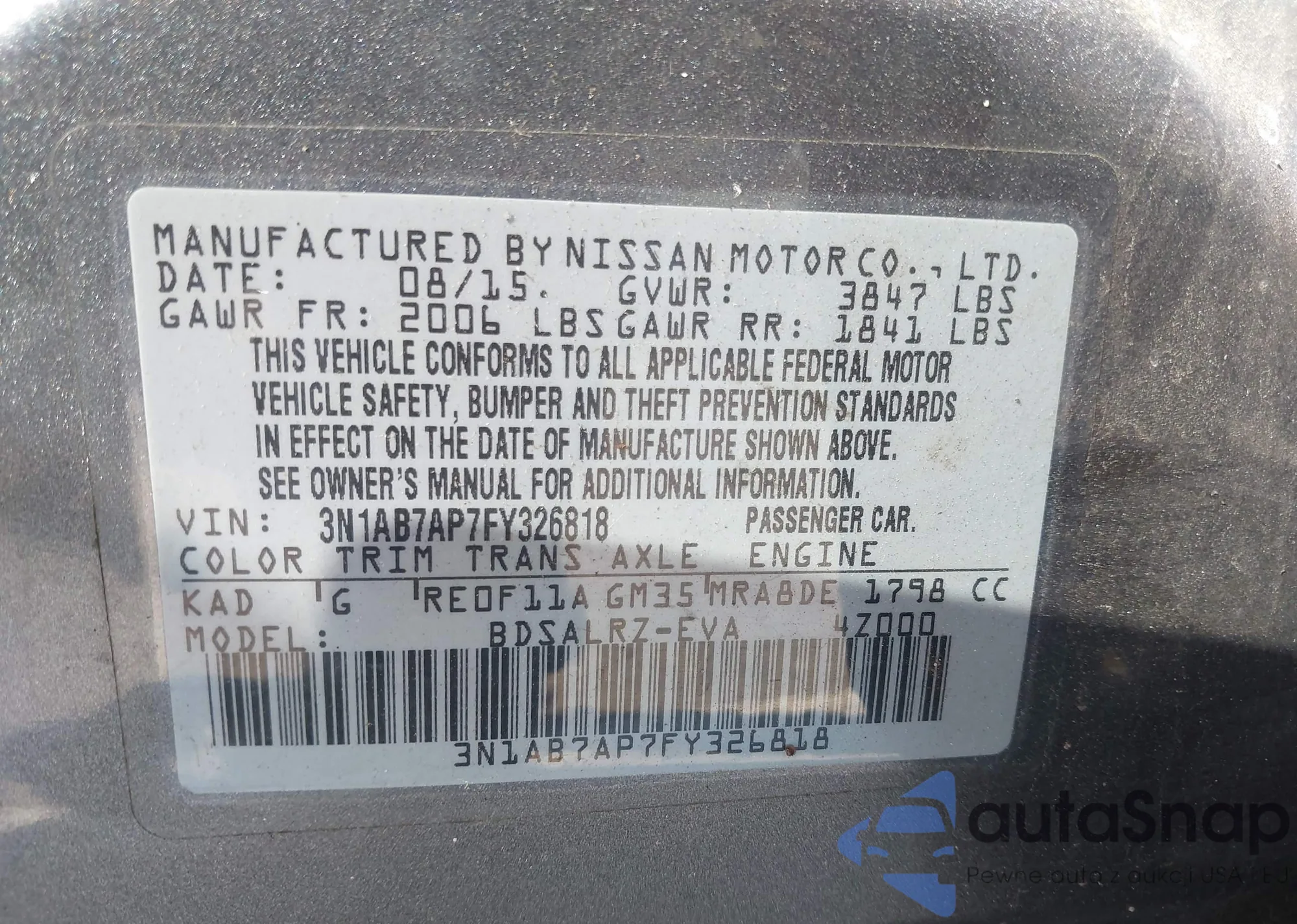 VIN: 3N1AB7AP7FY326818