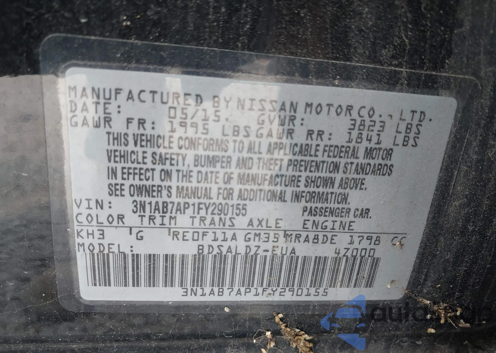 VIN: 3N1AB7AP1FY290155