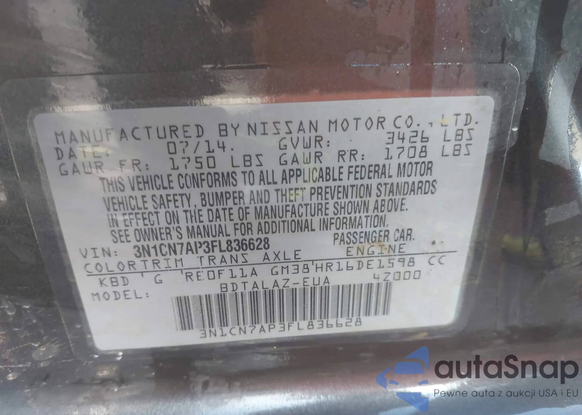 VIN: 3N1CN7AP3FL836628
