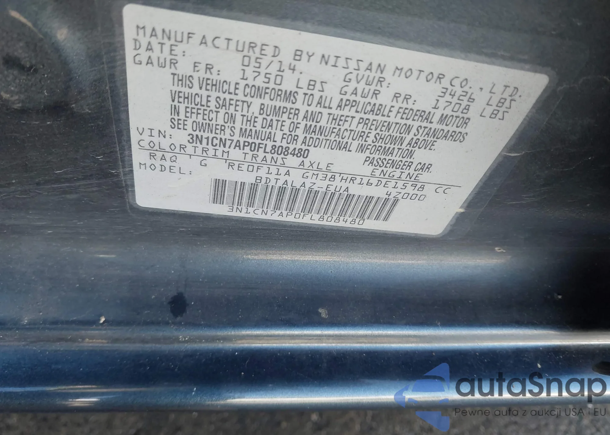 VIN: 3N1CN7AP0FL808480