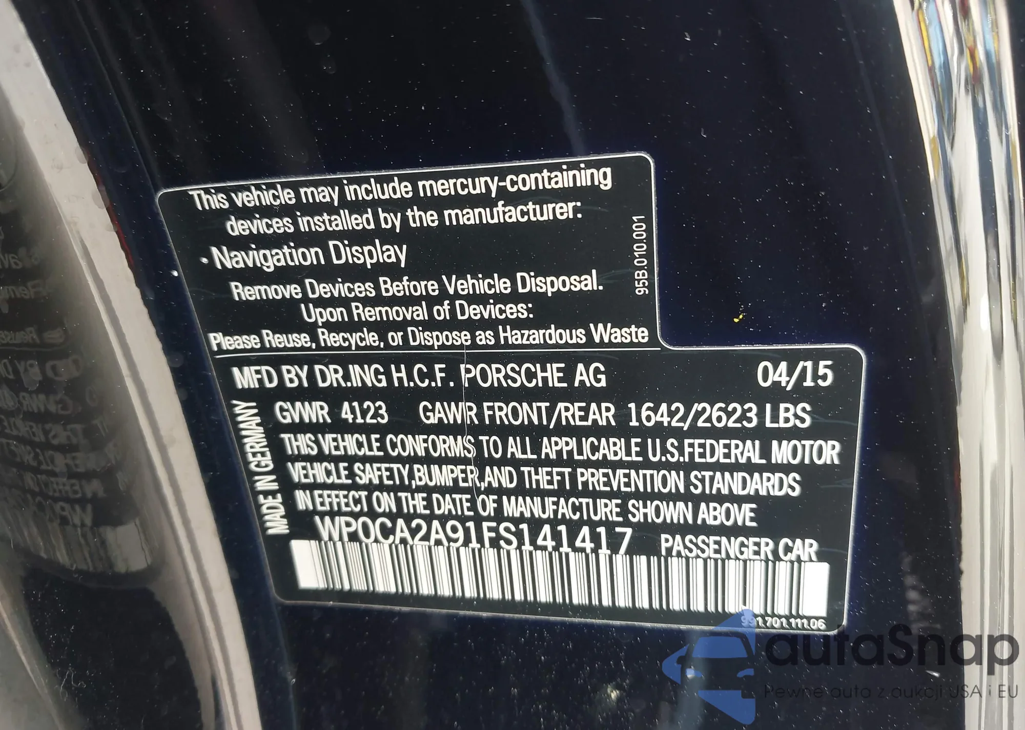 VIN: WP0CA2A91FS141417