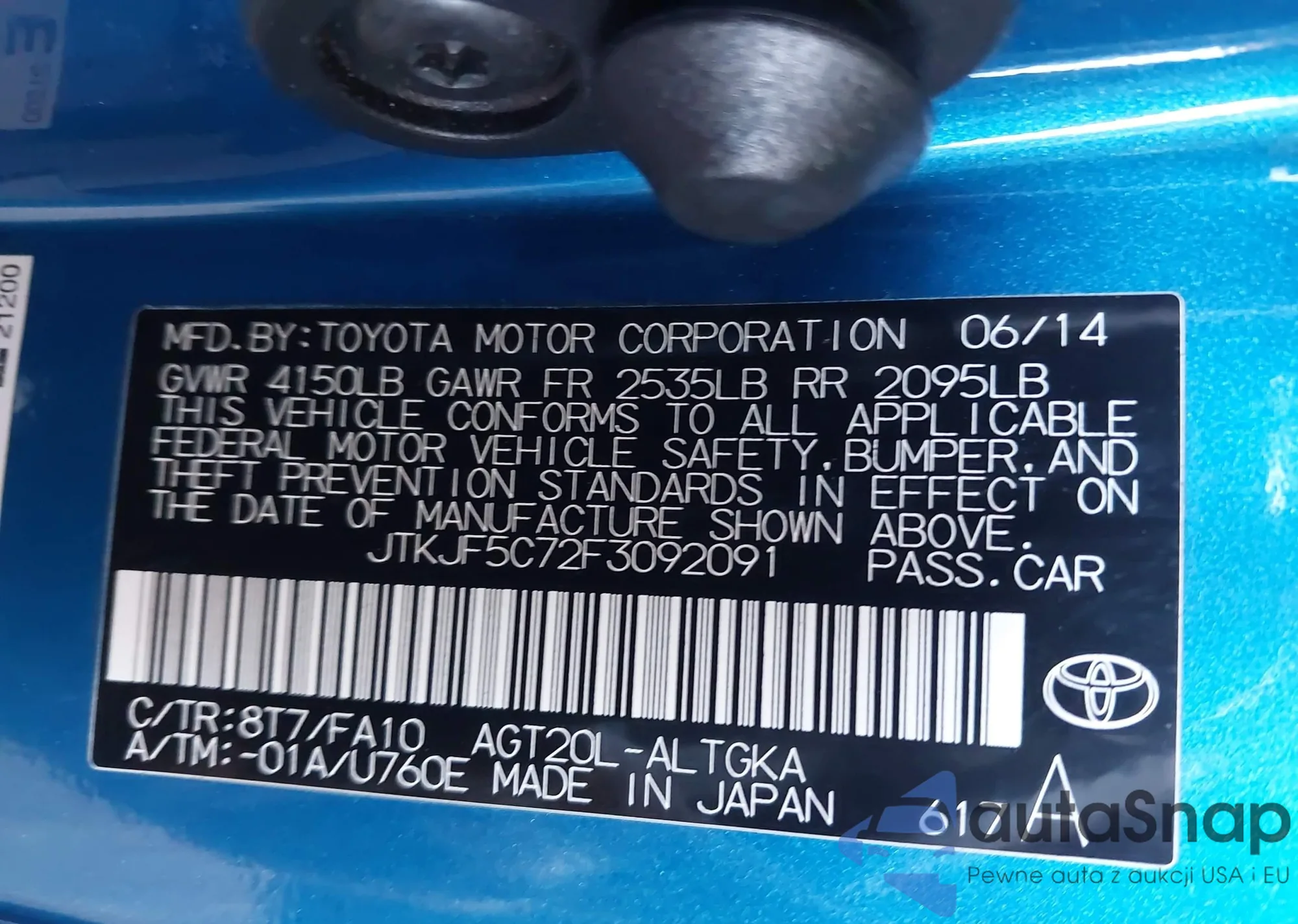 • VIN: JTKJF5C72F3092091