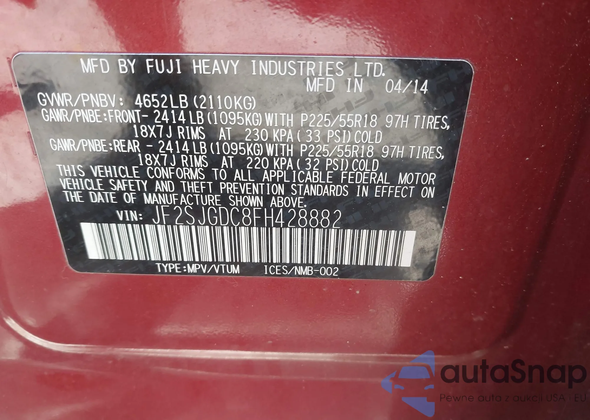 VIN: JF2SJGDC8FH428882