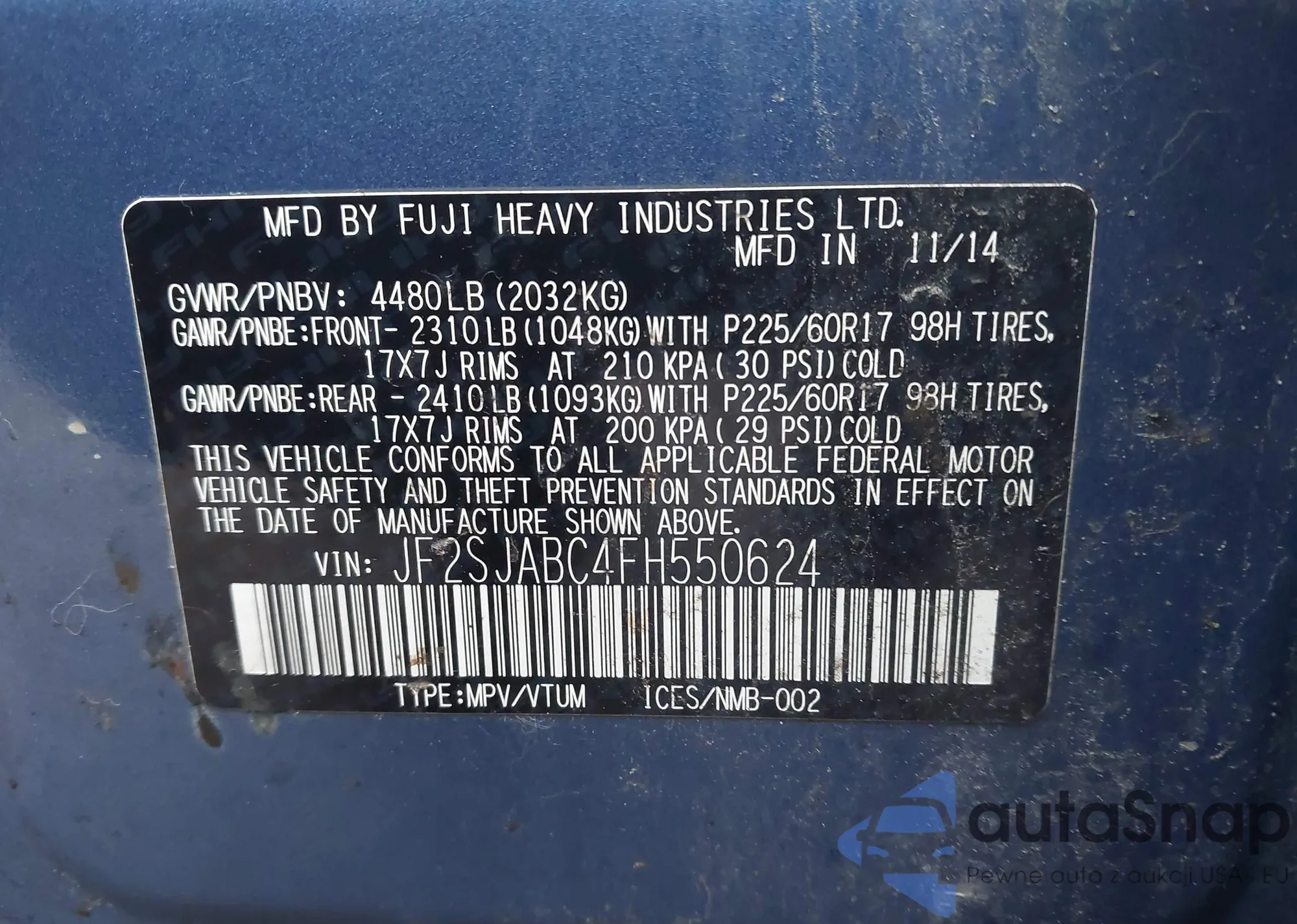 Samochód Subaru Forester 2015 (VIN JF2SJABC4FH550624) nie był wcześniej licytowany. Dokumenty są czyste, przebieg odpowiada lub jest niższy niż średnia rynku. Sprzedaje go firma ubezpieczeniowa – polecamy zakup. Dostawa do portu zajmie ok. 6–8 tygodni.