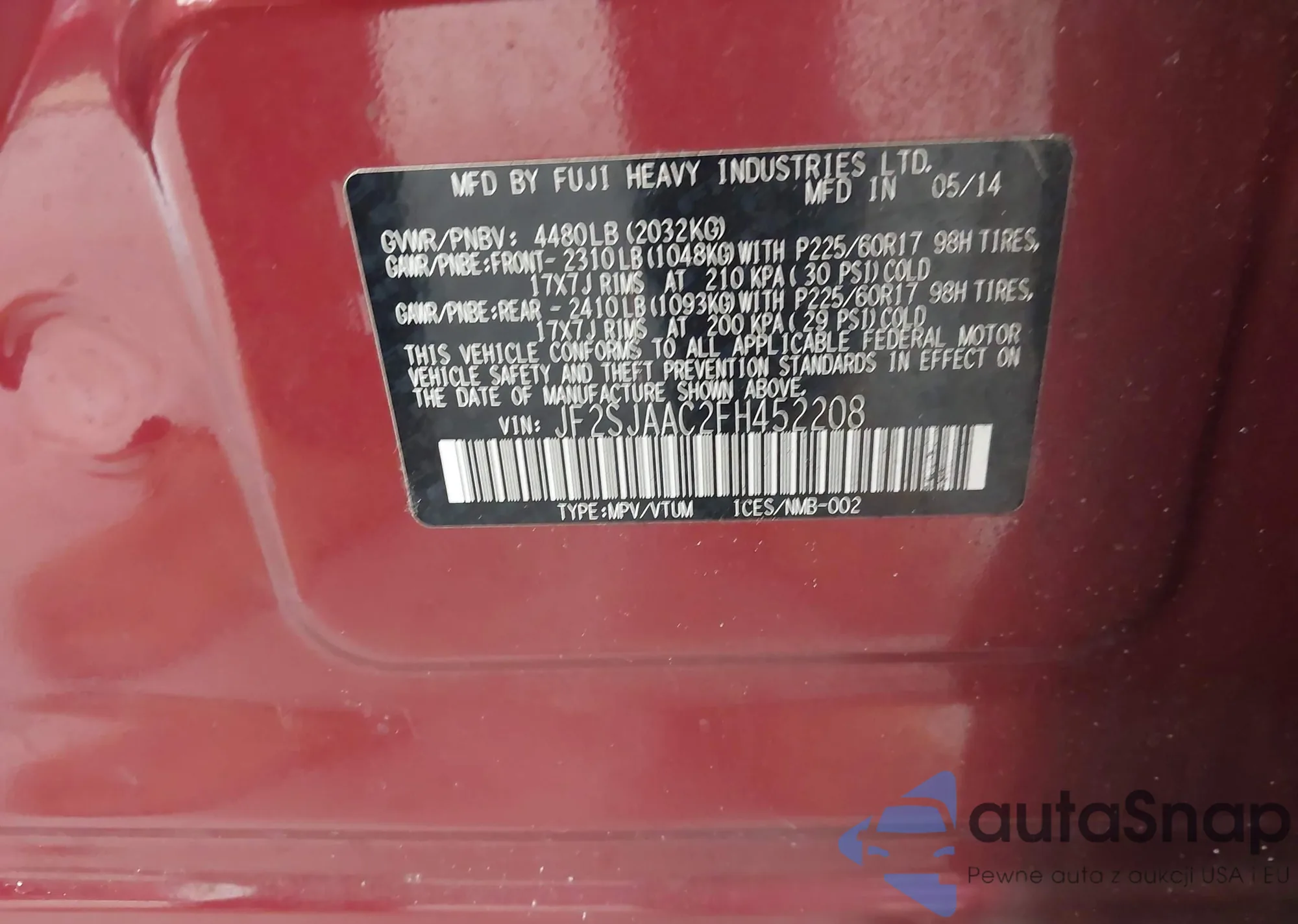 VIN: JF2SJAAC2FH452208