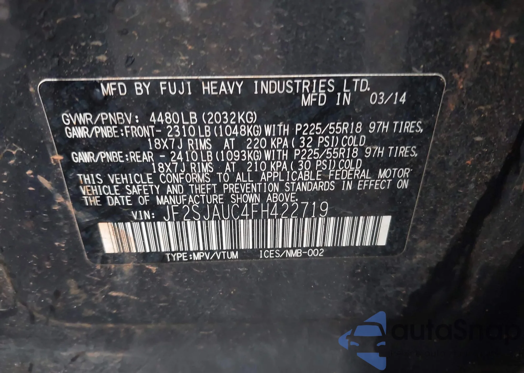 • VIN: JF2SJAUC4FH422719