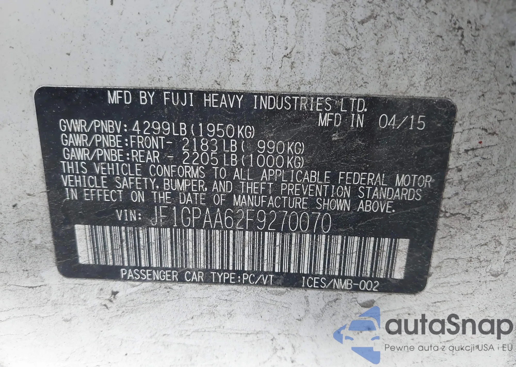 VIN: JF1GPAA62F9270070