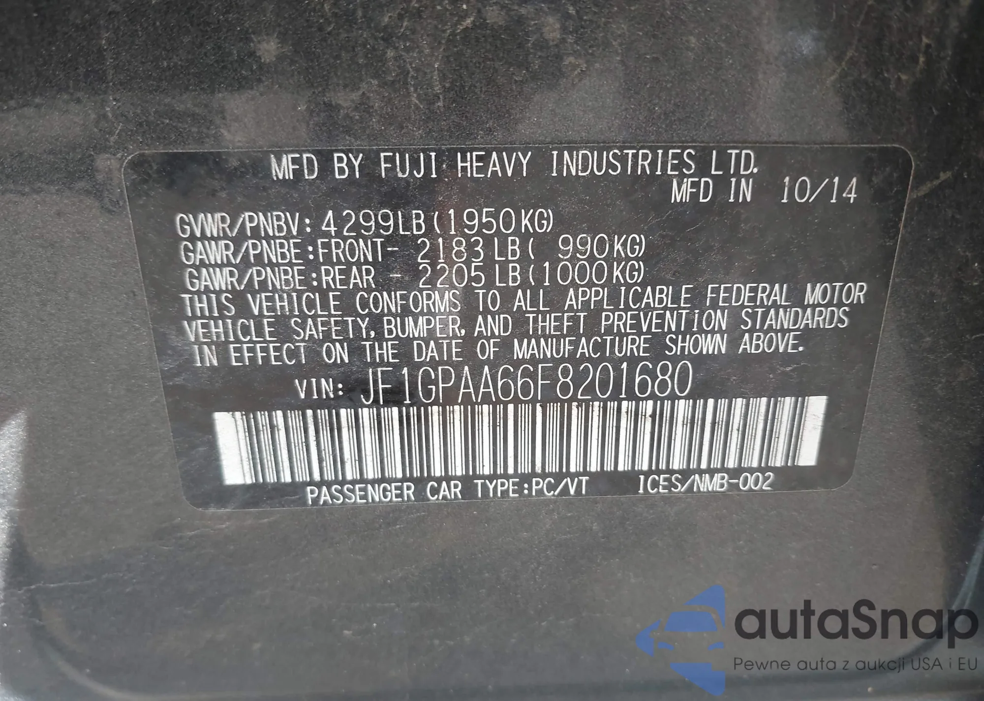 VIN: JF1GPAA66F8201680