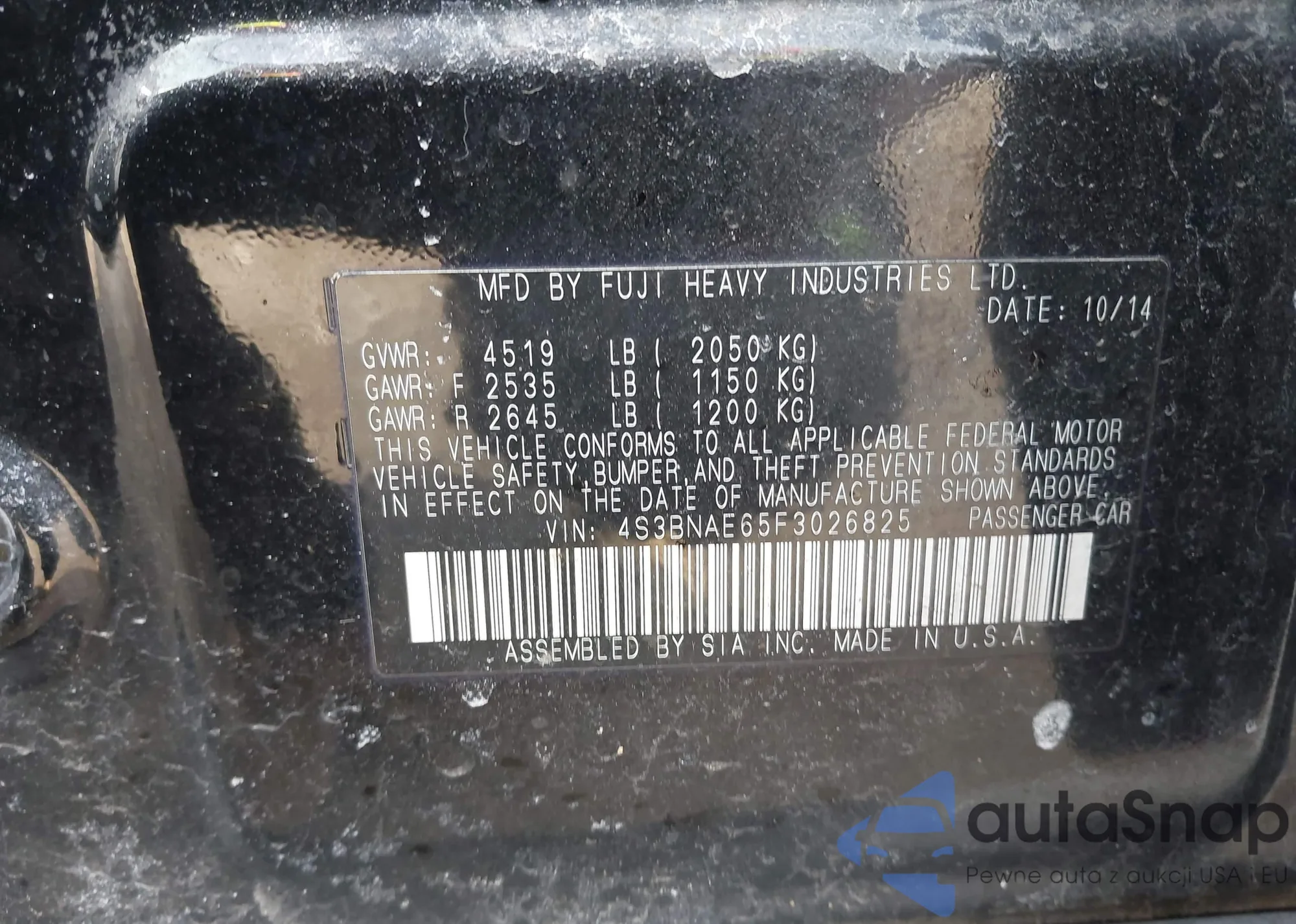 VIN: 4S3BNAE65F3026825