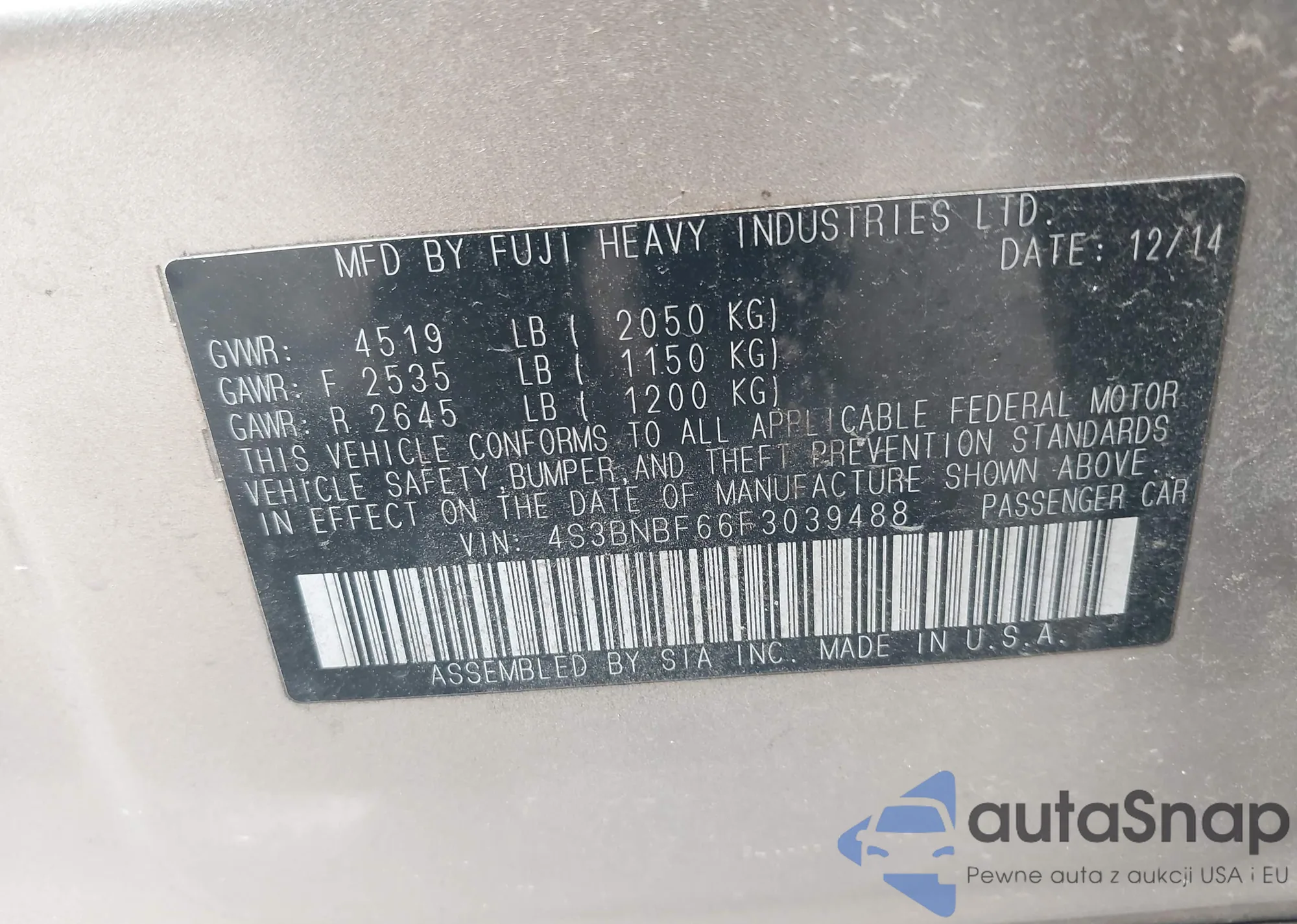 VIN: 4S3BNBF66F3039488