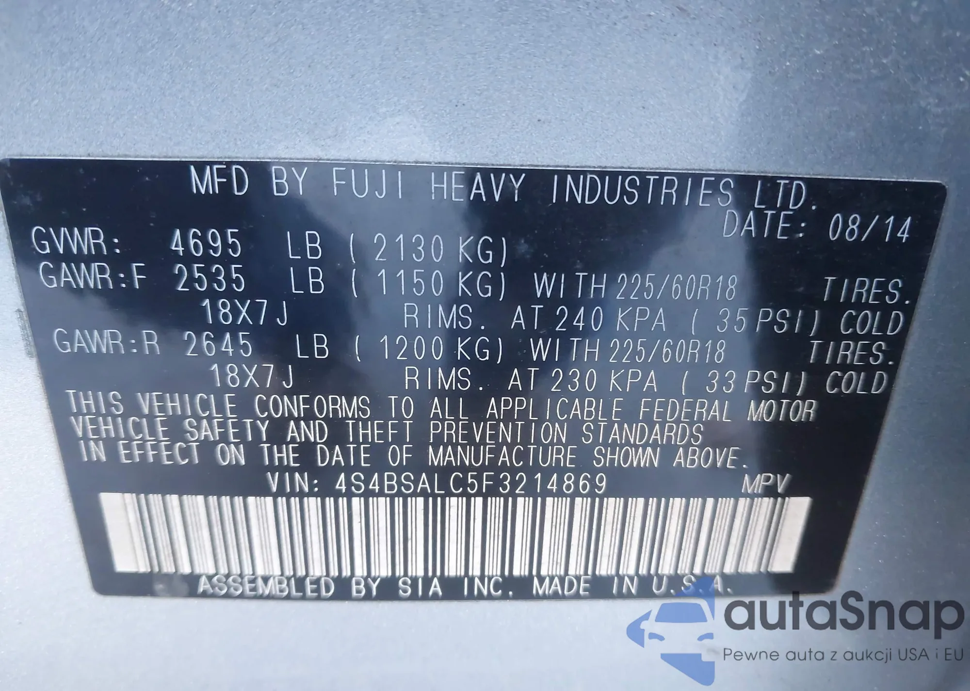 VIN: 4S4BSALC5F3214869