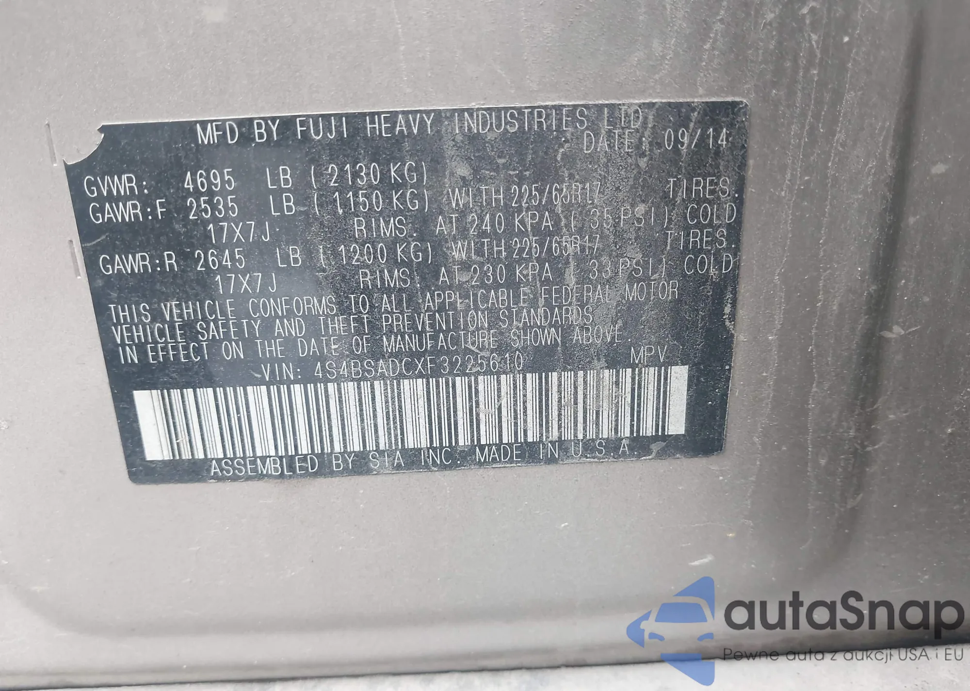 VIN: 4S4BSADCXF3225610