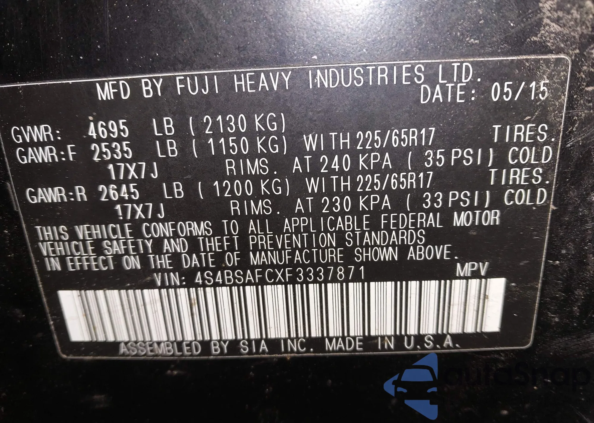 VIN: 4S4BSAFCXF3337871