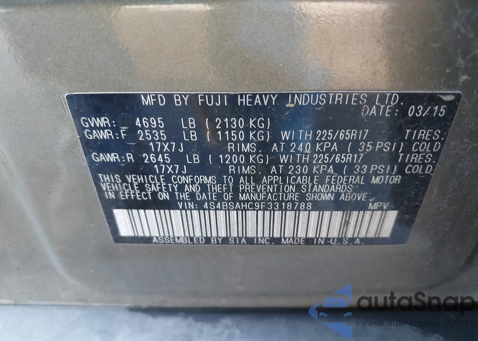 VIN: 4S4BSAHC9F3318788
