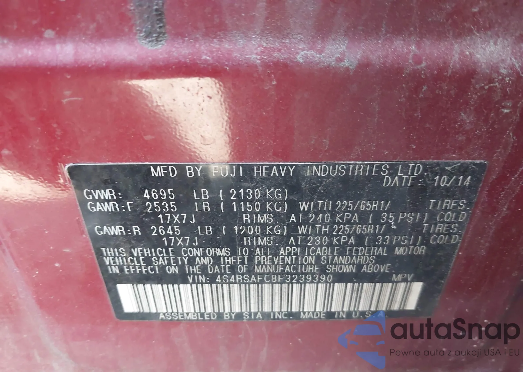 VIN: 4S4BSAFC8F3239390