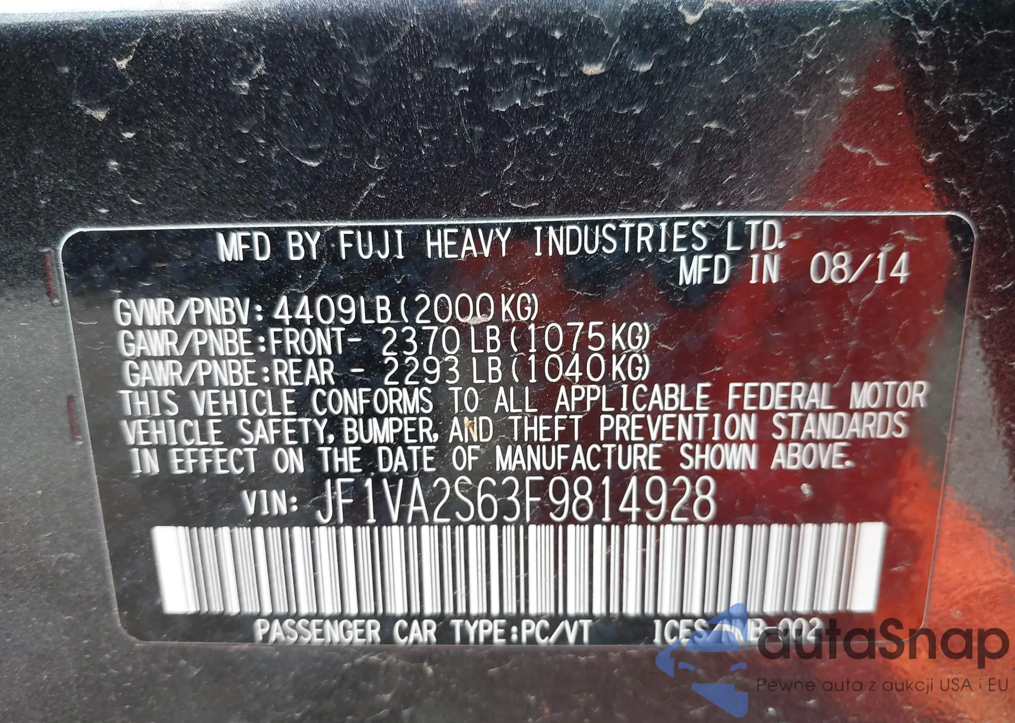 VIN: JF1VA2S63F9814928