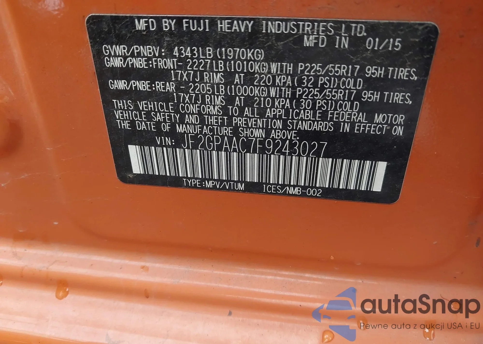 VIN: JF2GPAAC7F9243027