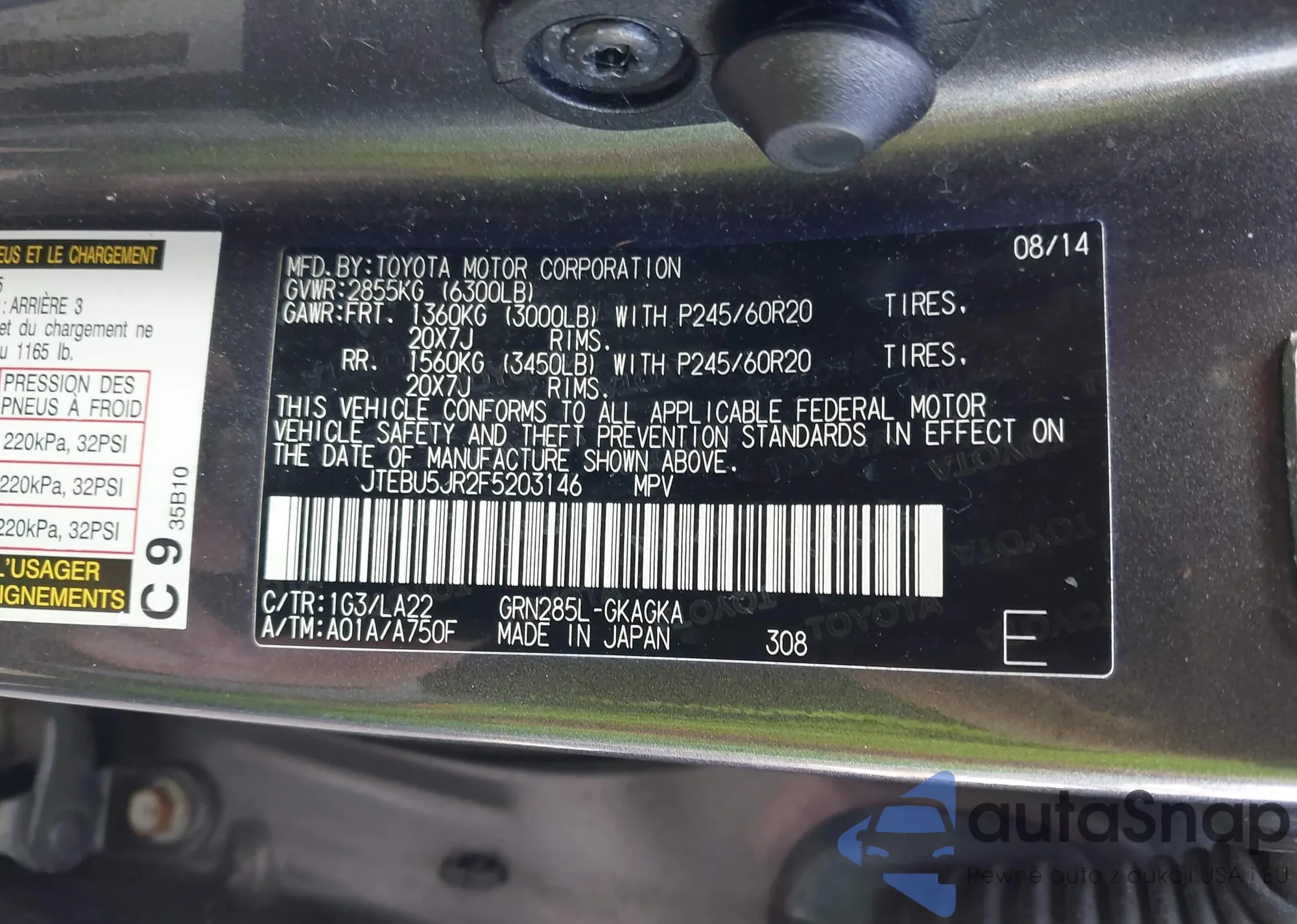 • VIN: JTEBU5JR2F5203146