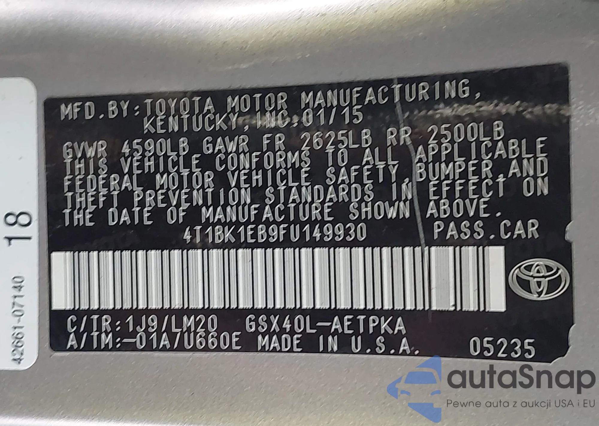 VIN: 4T1BK1EB9FU149930