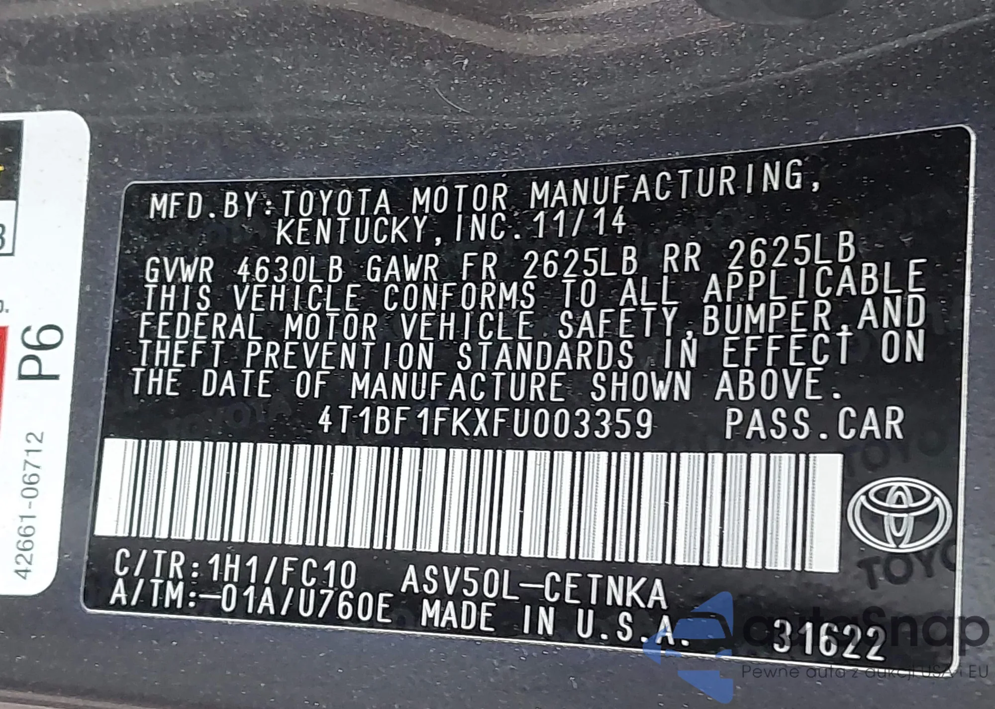 VIN: 4T1BF1FKXFU003359
