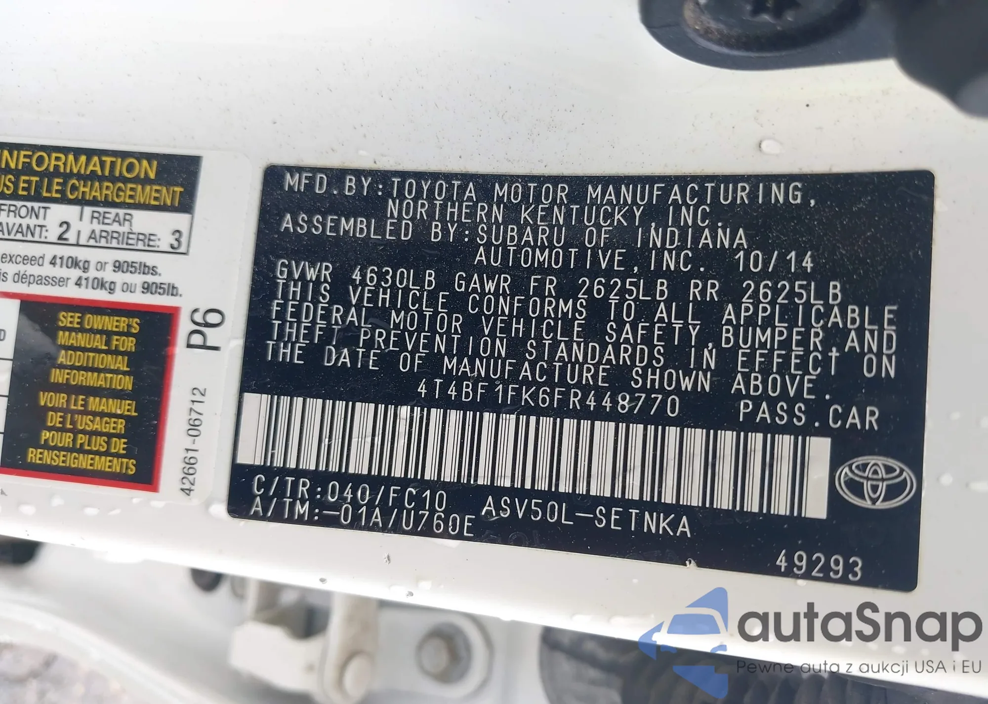 VIN: 4T4BF1FK6FR448770
