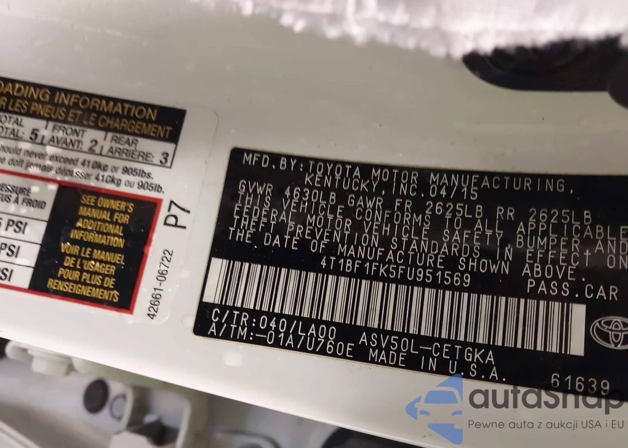 VIN: 4T1BF1FK5FU951569