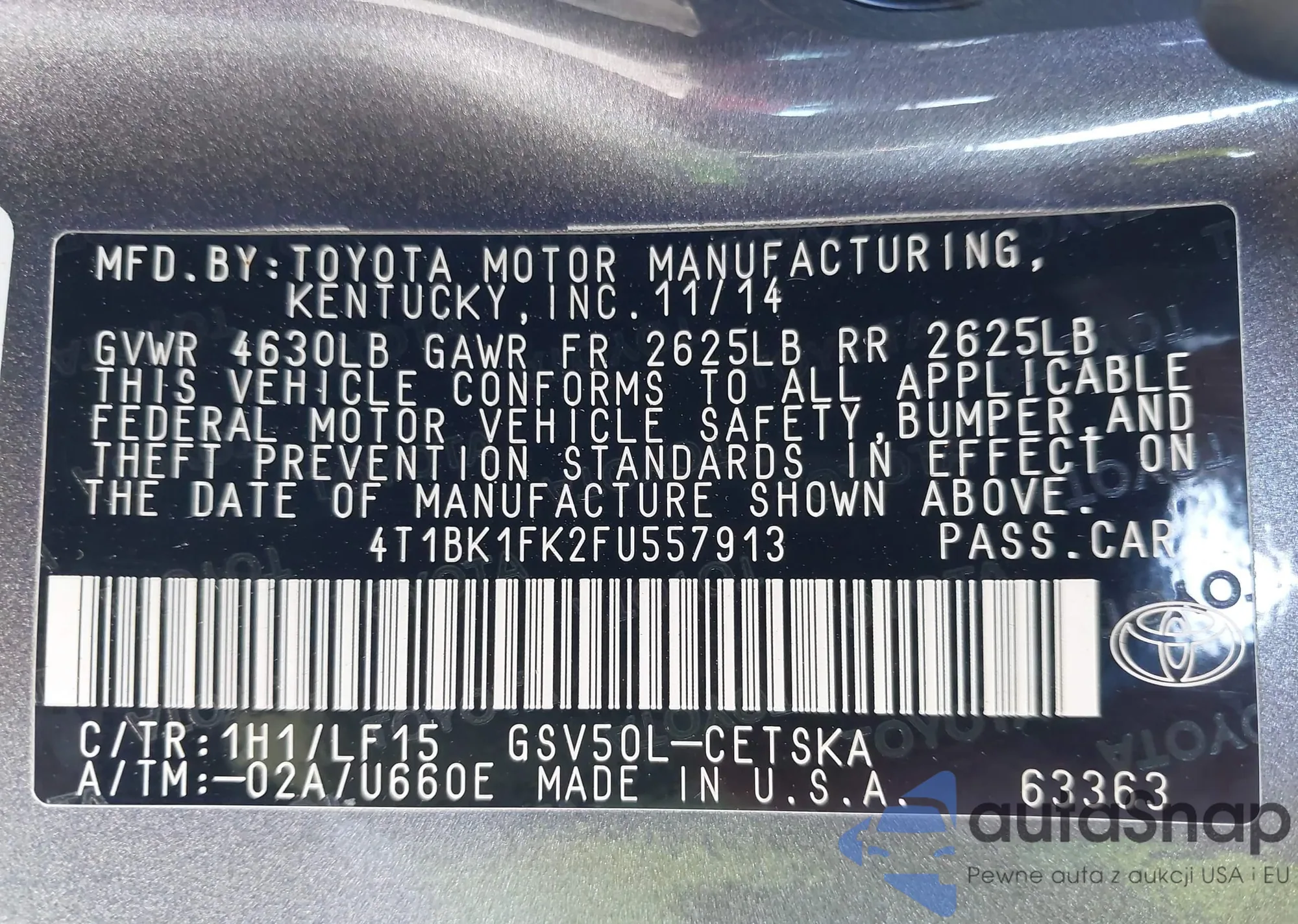 VIN: 4T1BK1FK2FU557913