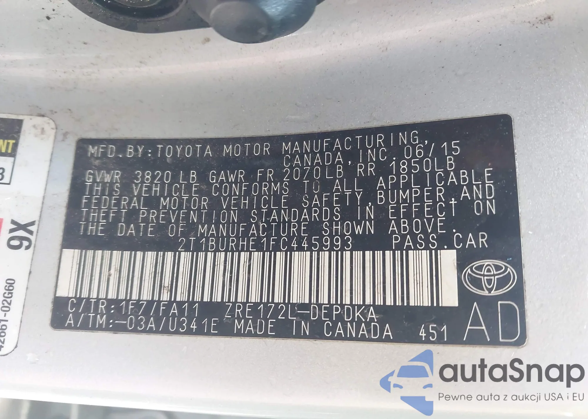 Toyota Corolla 2015 – Historia pojazdu (sprzedany na IAAI)