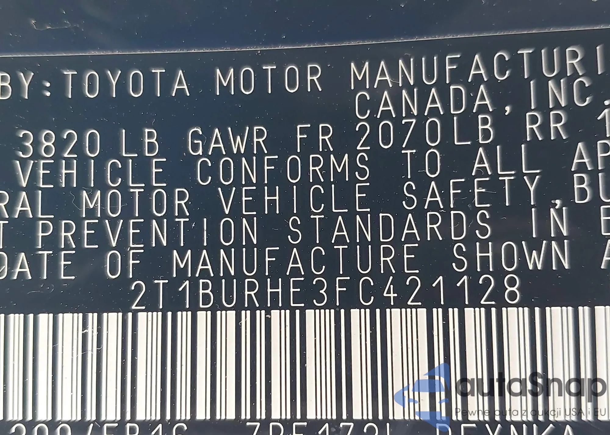 VIN: 2T1BURHE3FC421128