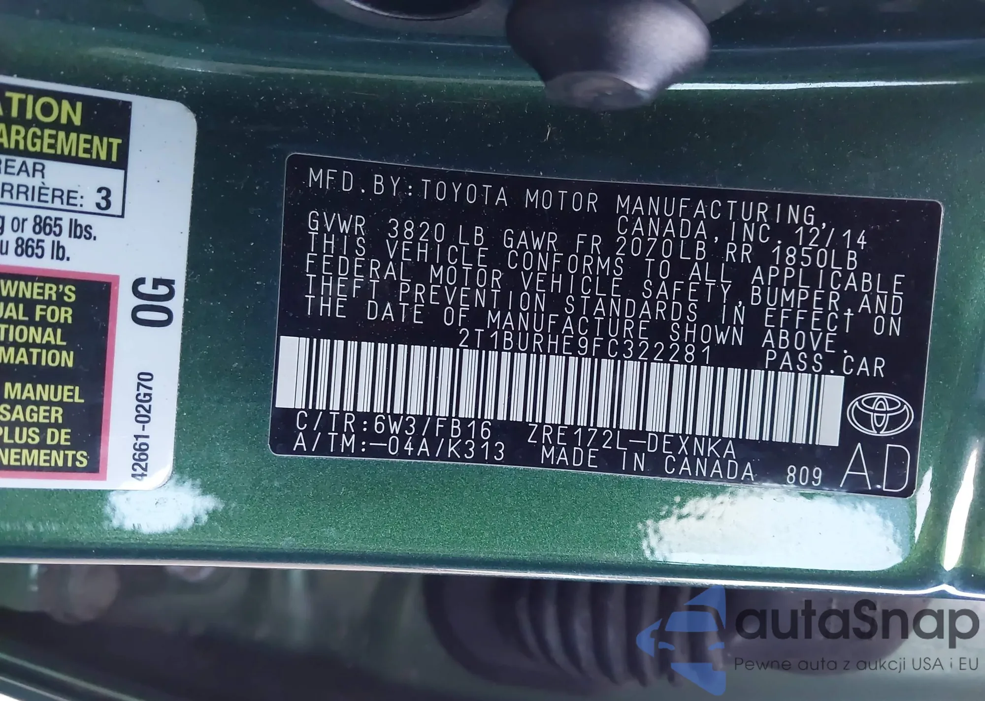VIN: 2T1BURHE9FC322281