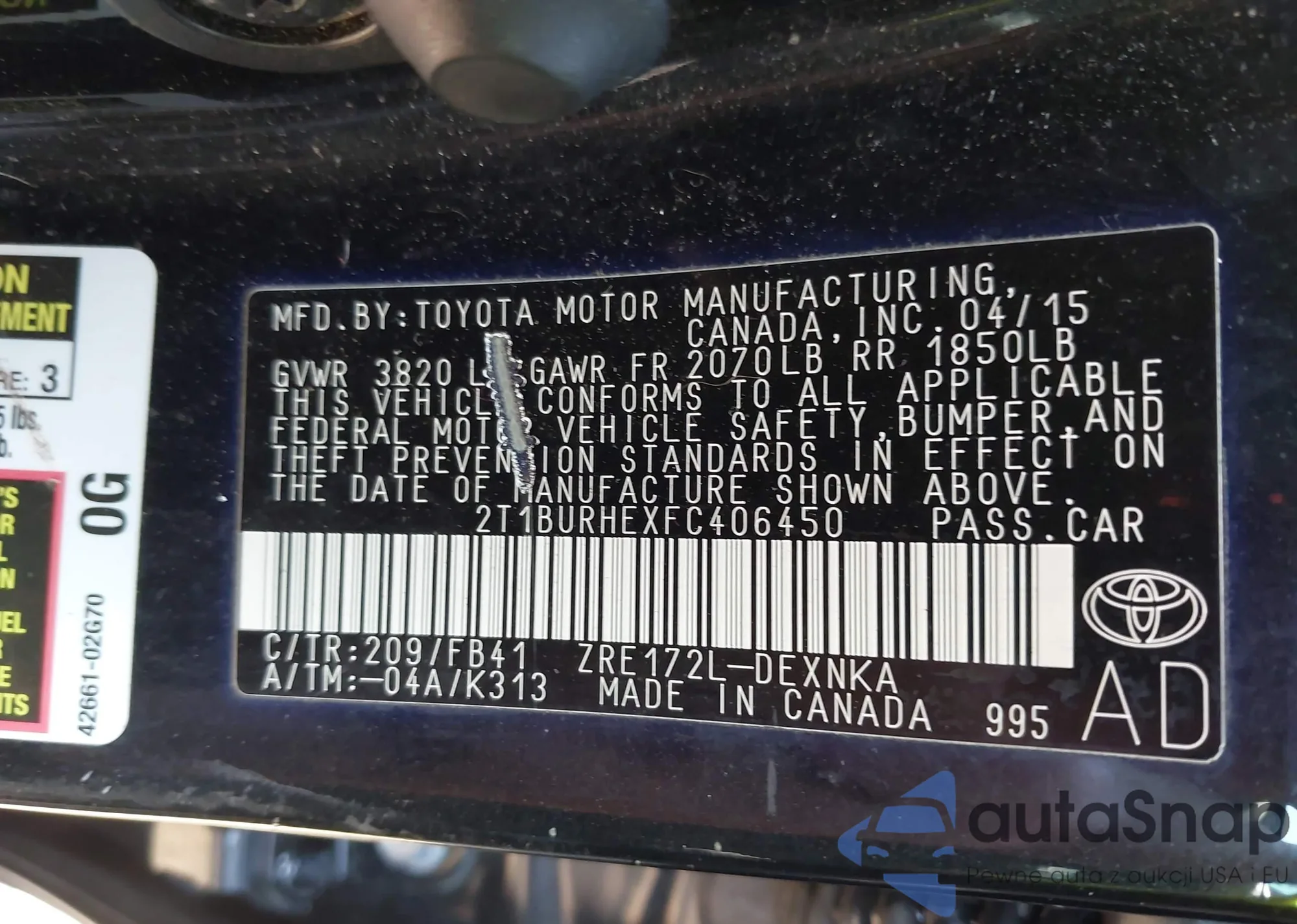 Marka: 2015 Toyota Corolla L...