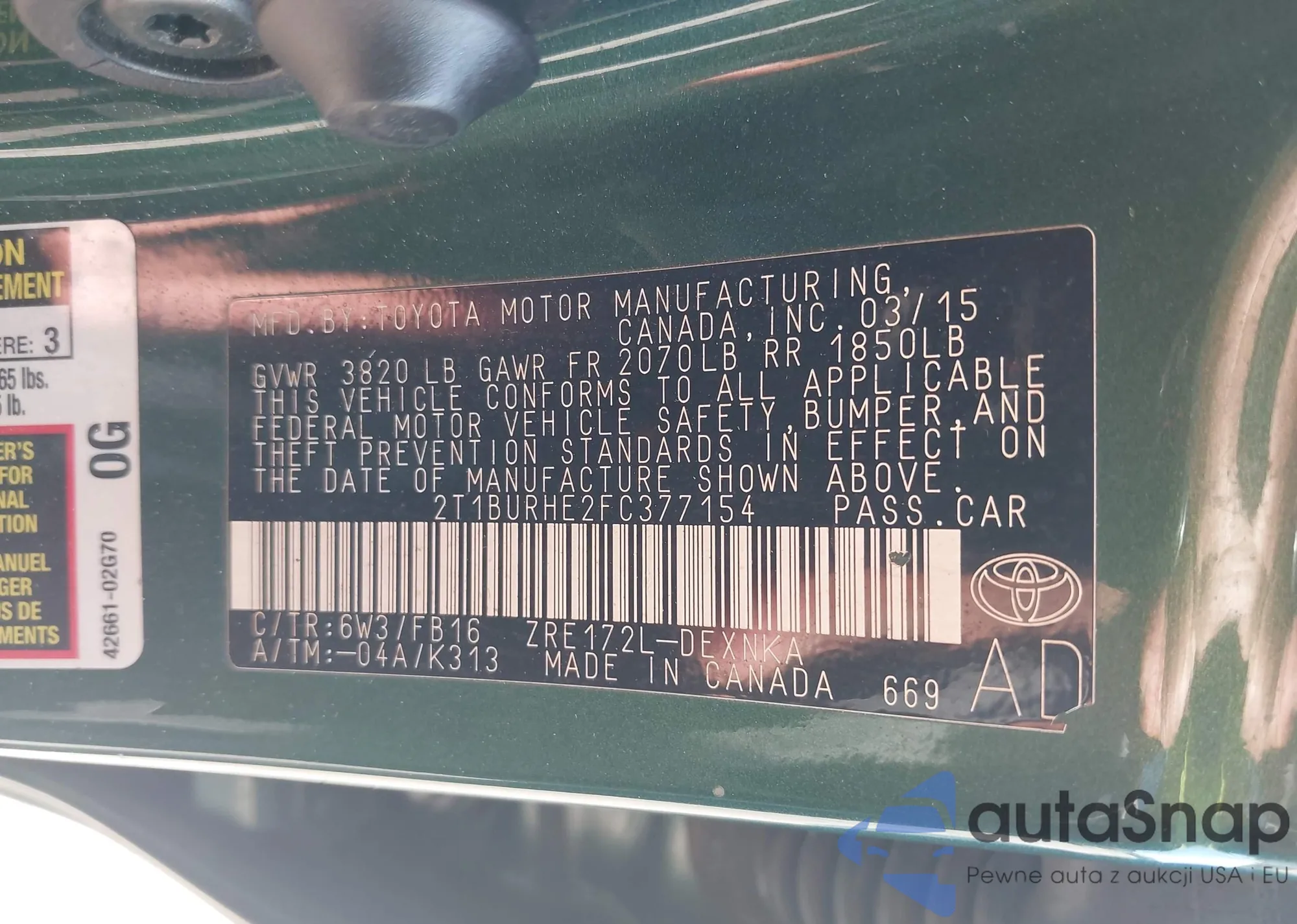 Marka: 2015 Toyota Corolla L...