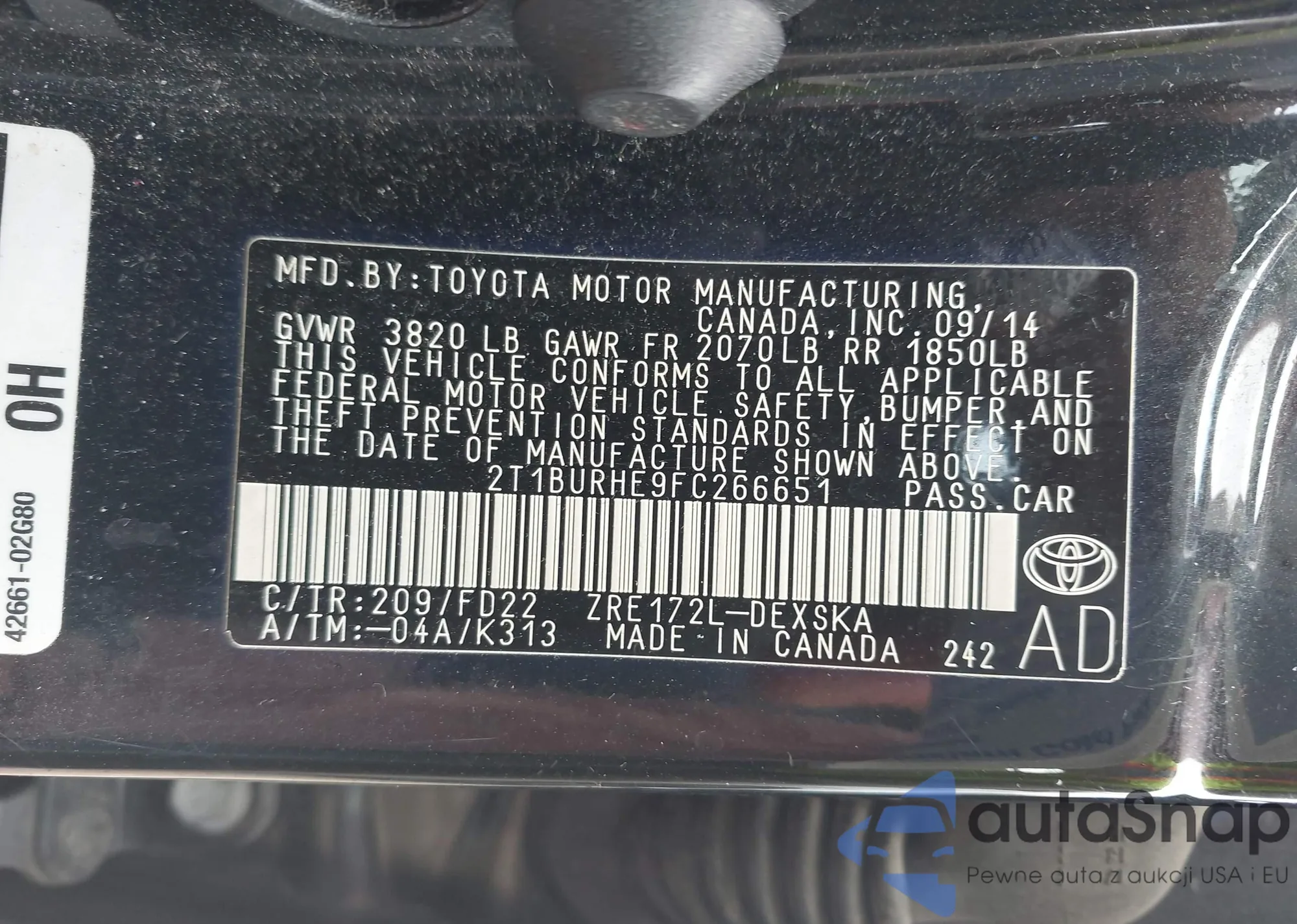 VIN: 2T1BURHE9FC266651