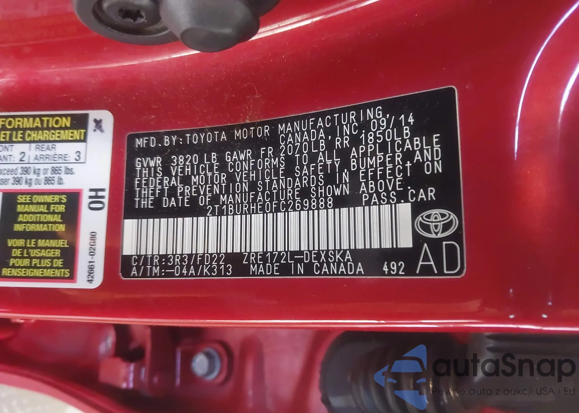 Samochód Toyota Corolla 2015 (VIN 2T1BURHE0FC269888) nie był wcześniej licytowany. Dokumenty są czyste, przebieg odpowiada lub jest niższy niż średnia rynku. Sprzedaje go firma ubezpieczeniowa – polecamy zakup. Dostawa do portu zajmie ok. 6–8 tygodni.