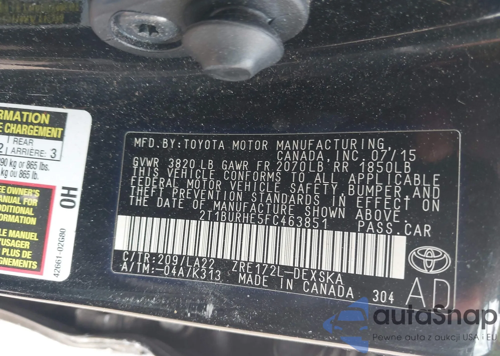 VIN: 2T1BURHE5FC463851