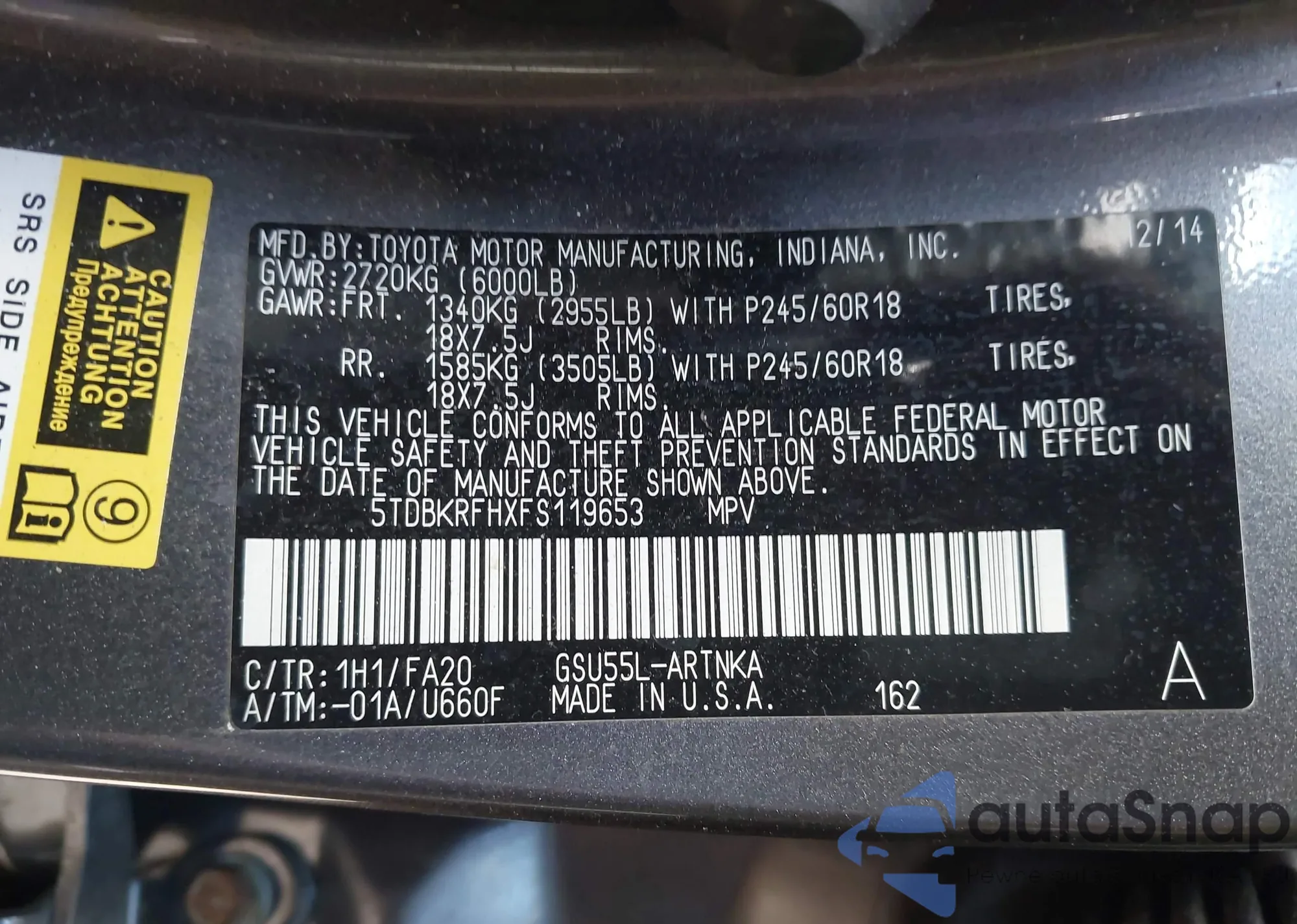 VIN: 5TDBKRFHXFS119653