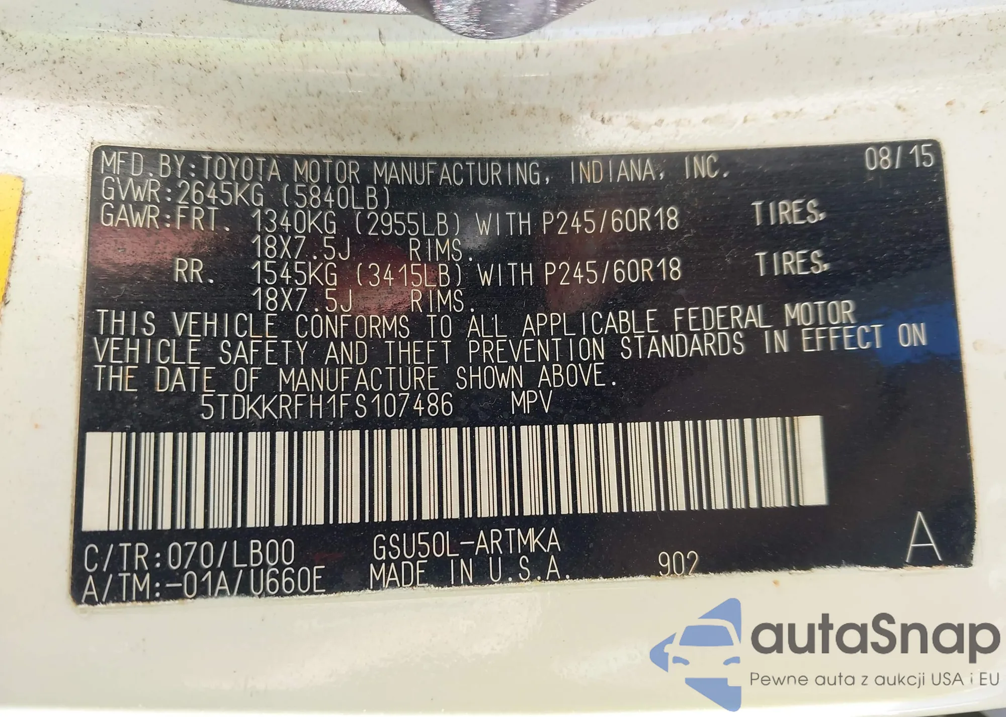 Samochód Toyota Highlander 2015 (VIN 5TDKKRFH1FS107486) sprzedaje go niezweryfikowany sprzedawca. Zalecamy raport Carfax i potwierdzenie możliwości rejestracji pojazdu przed zakupem.