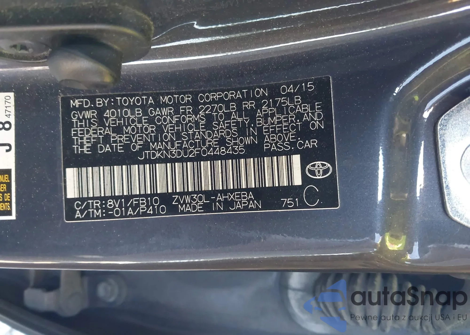 Samochód Toyota Prius 2015 (VIN JTDKN3DU2F0448435) sprzedaje go niezweryfikowany sprzedawca. Zalecamy raport Carfax i potwierdzenie możliwości rejestracji pojazdu przed zakupem.