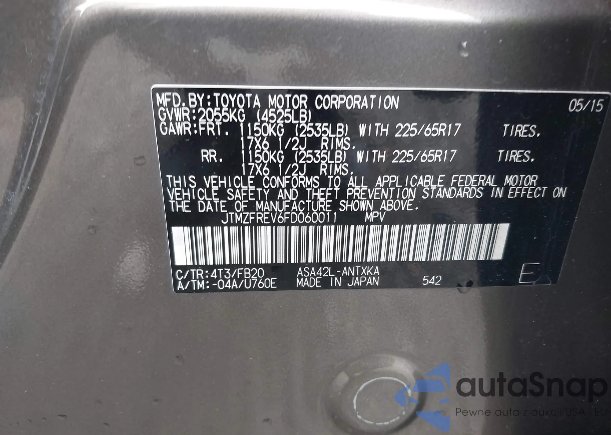 VIN: JTMZFREV6FD060011