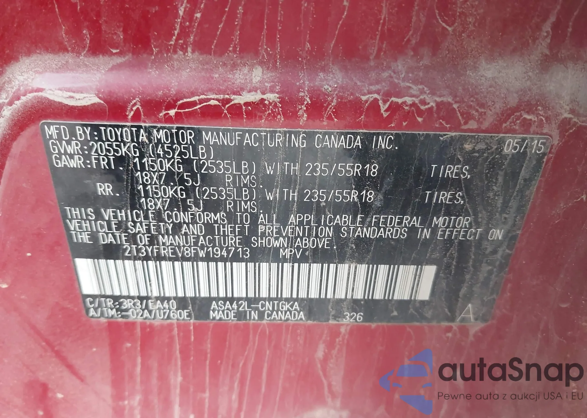 VIN: 2T3YFREV8FW194713