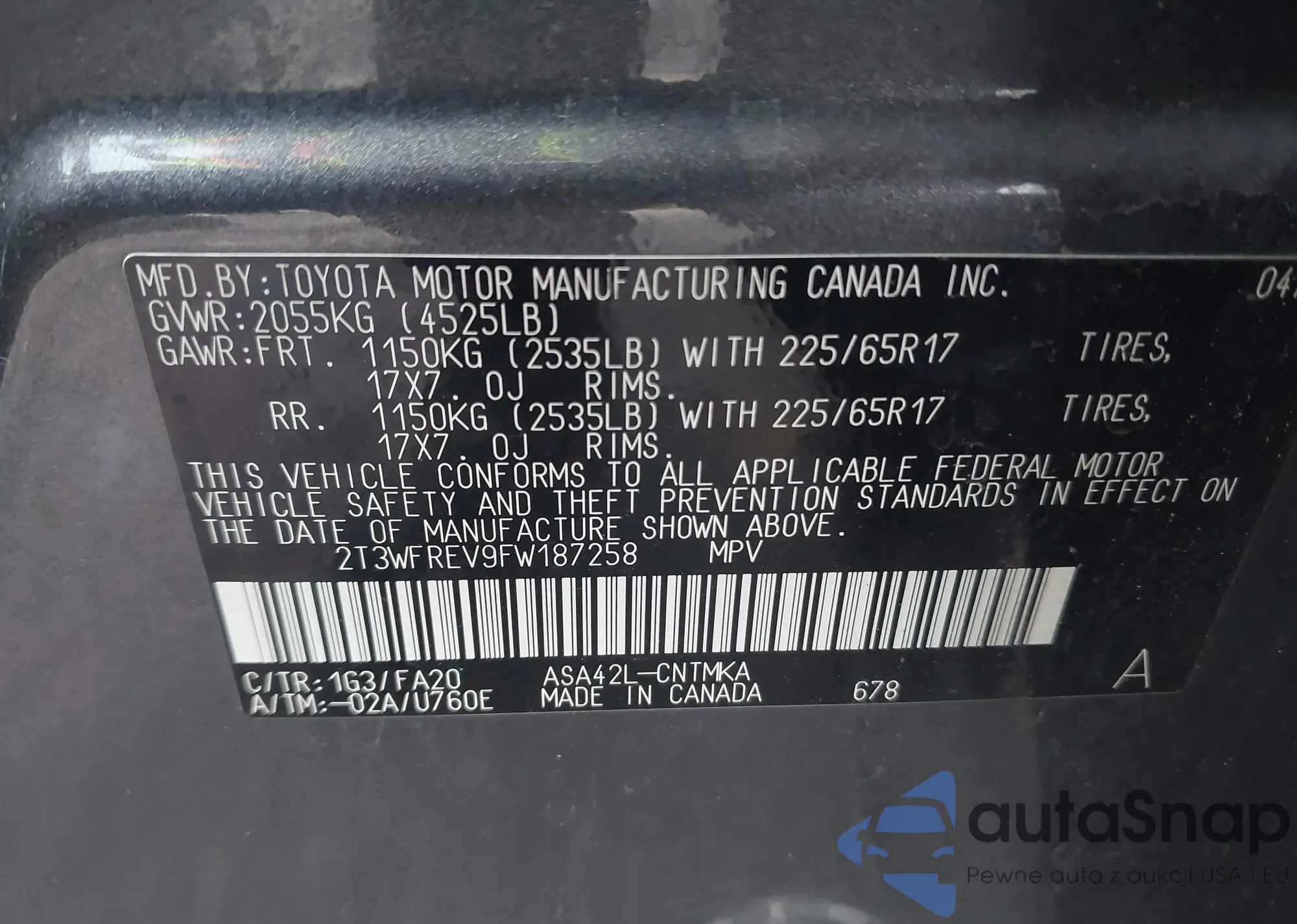 • VIN: 2T3WFREV9FW187258