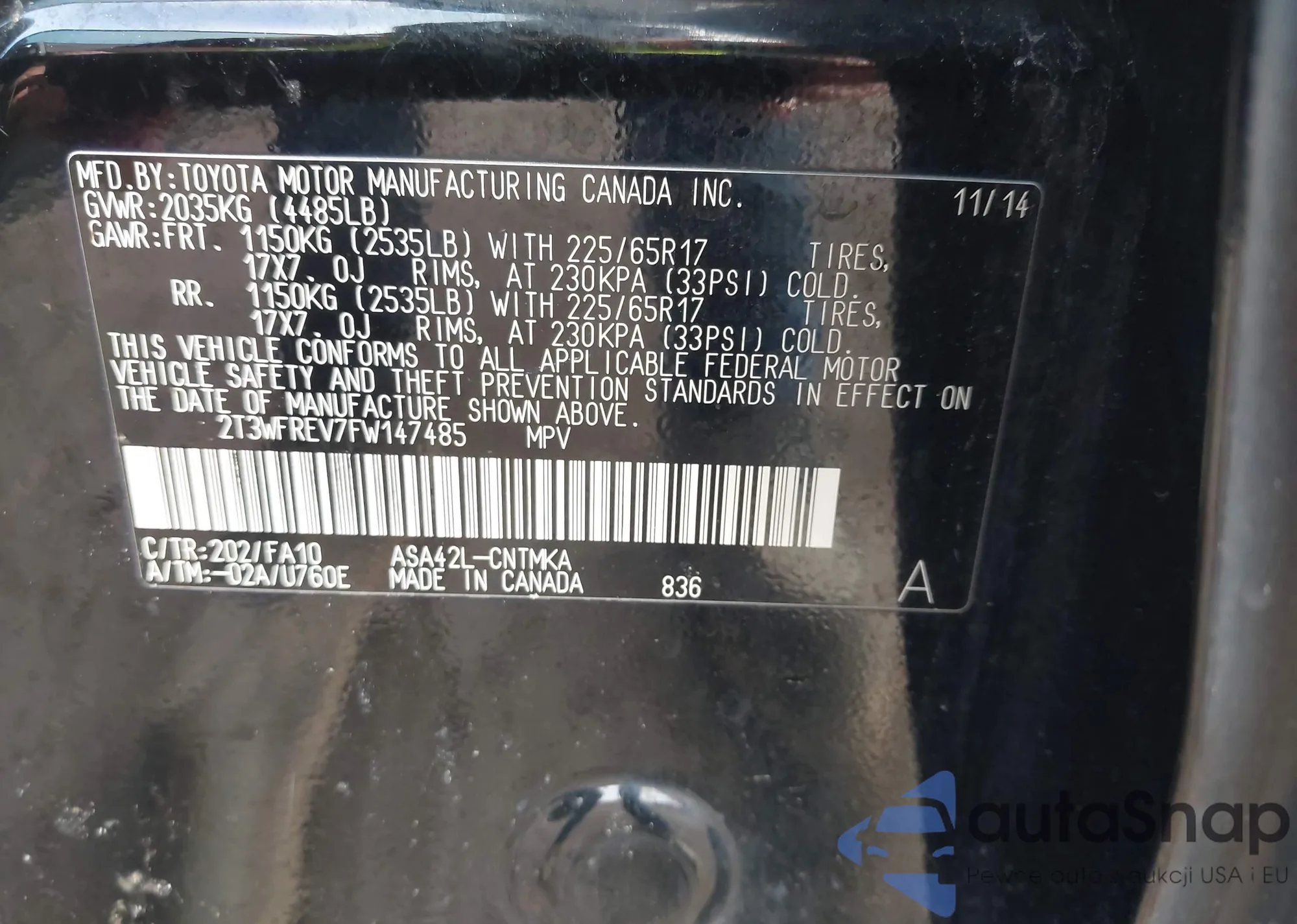 • VIN: 2T3WFREV7FW147485