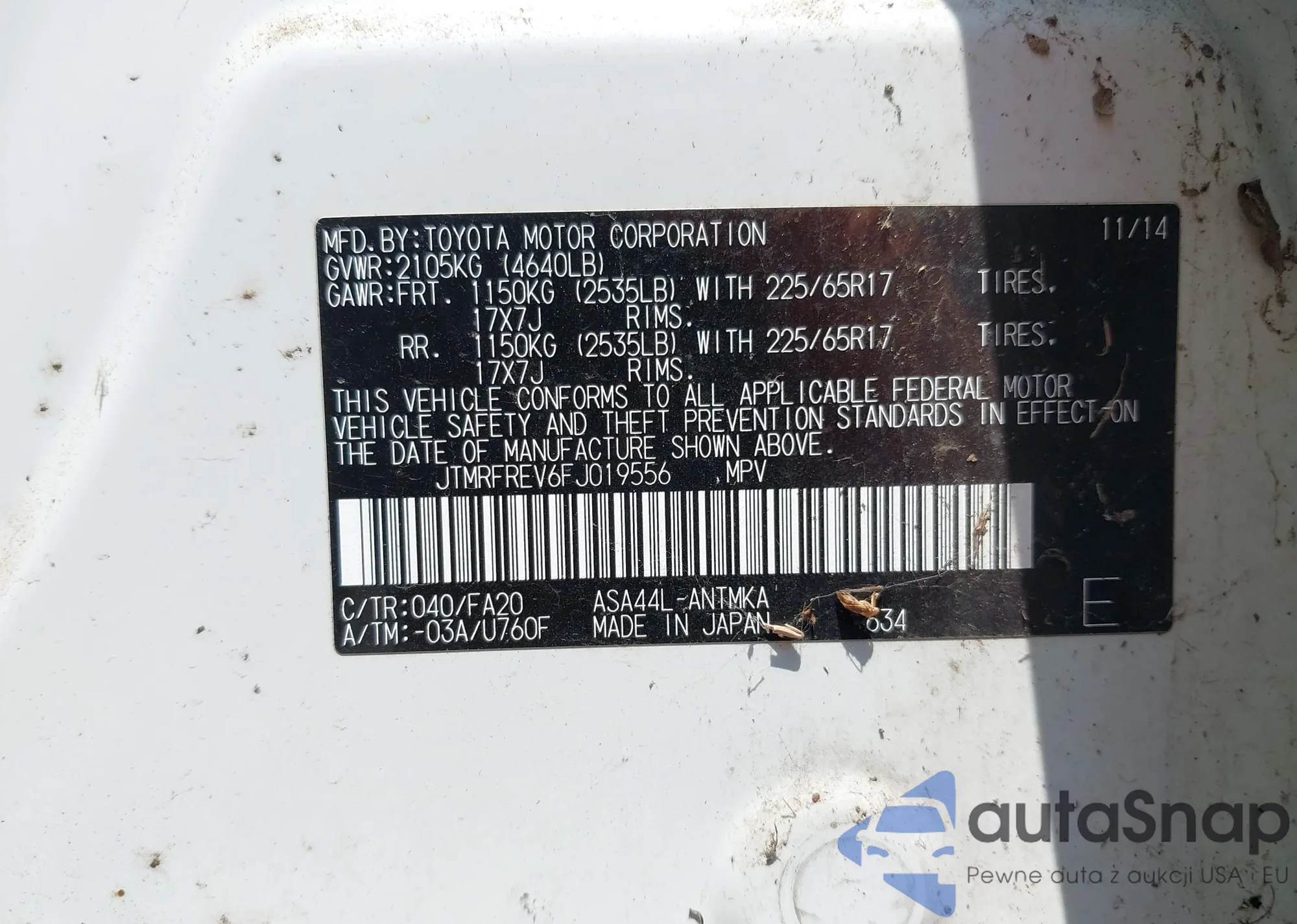VIN: JTMRFREV6FJ019556