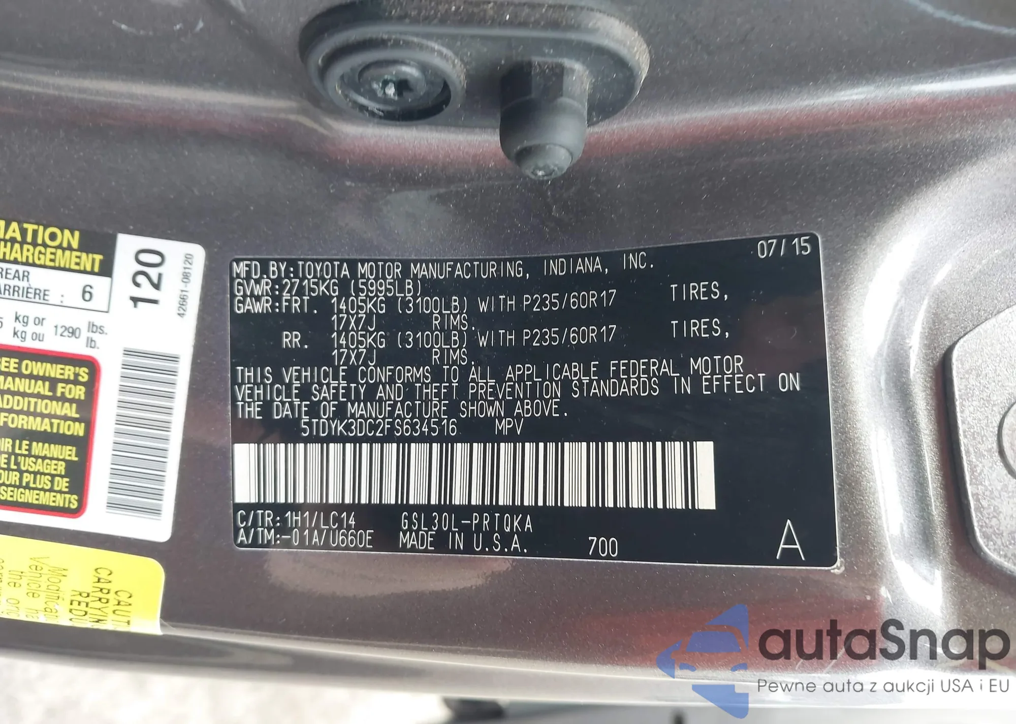 VIN: 5TDYK3DC2FS634516
