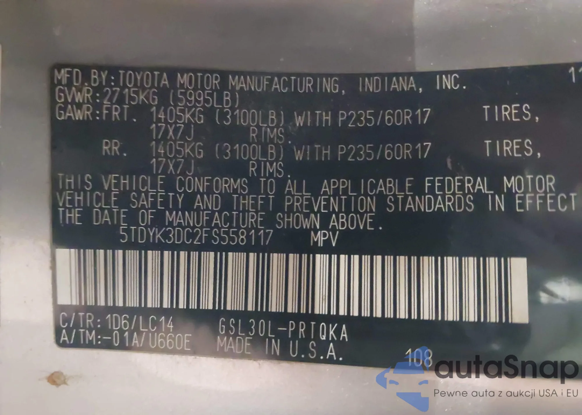 • VIN: 5TDYK3DC2FS558117